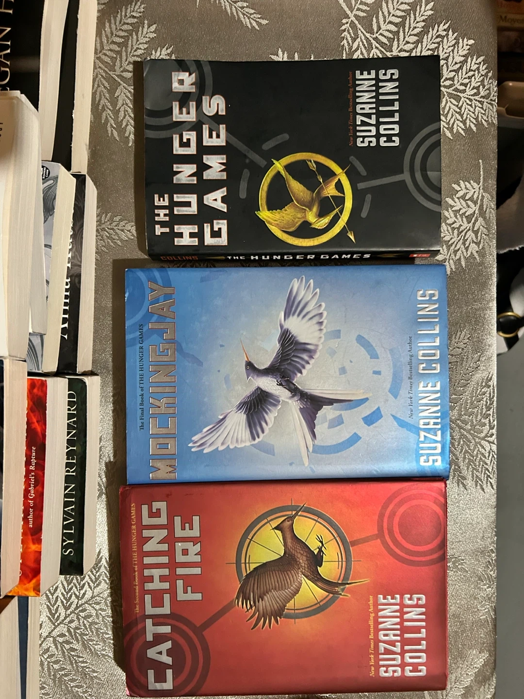 Selling the complete Hunger Games trilogy by Suzanne Collins! Includes: - The Hunger Games - Catching Fire - Mockingjay Perfect for any fan of the series or someone looking for a captivating read. $15 for 3 books