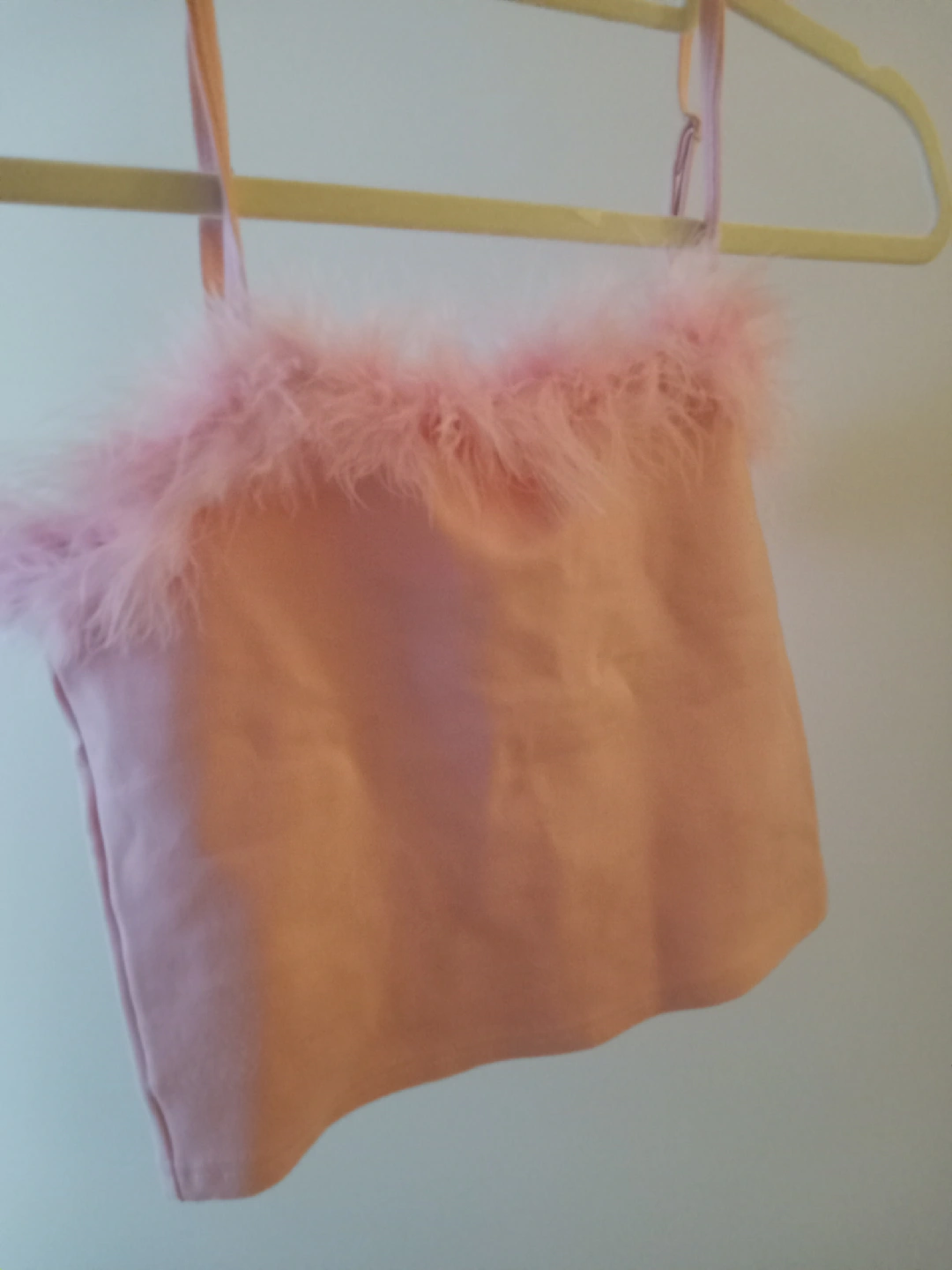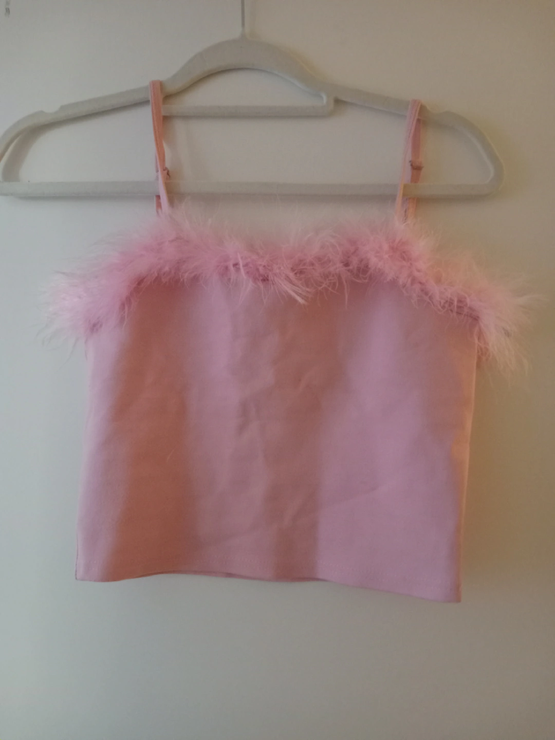 Selling a cute pink cami top with a feather trim! It's a size medium and in great condition. Perfect for a night out or a fun summer look!