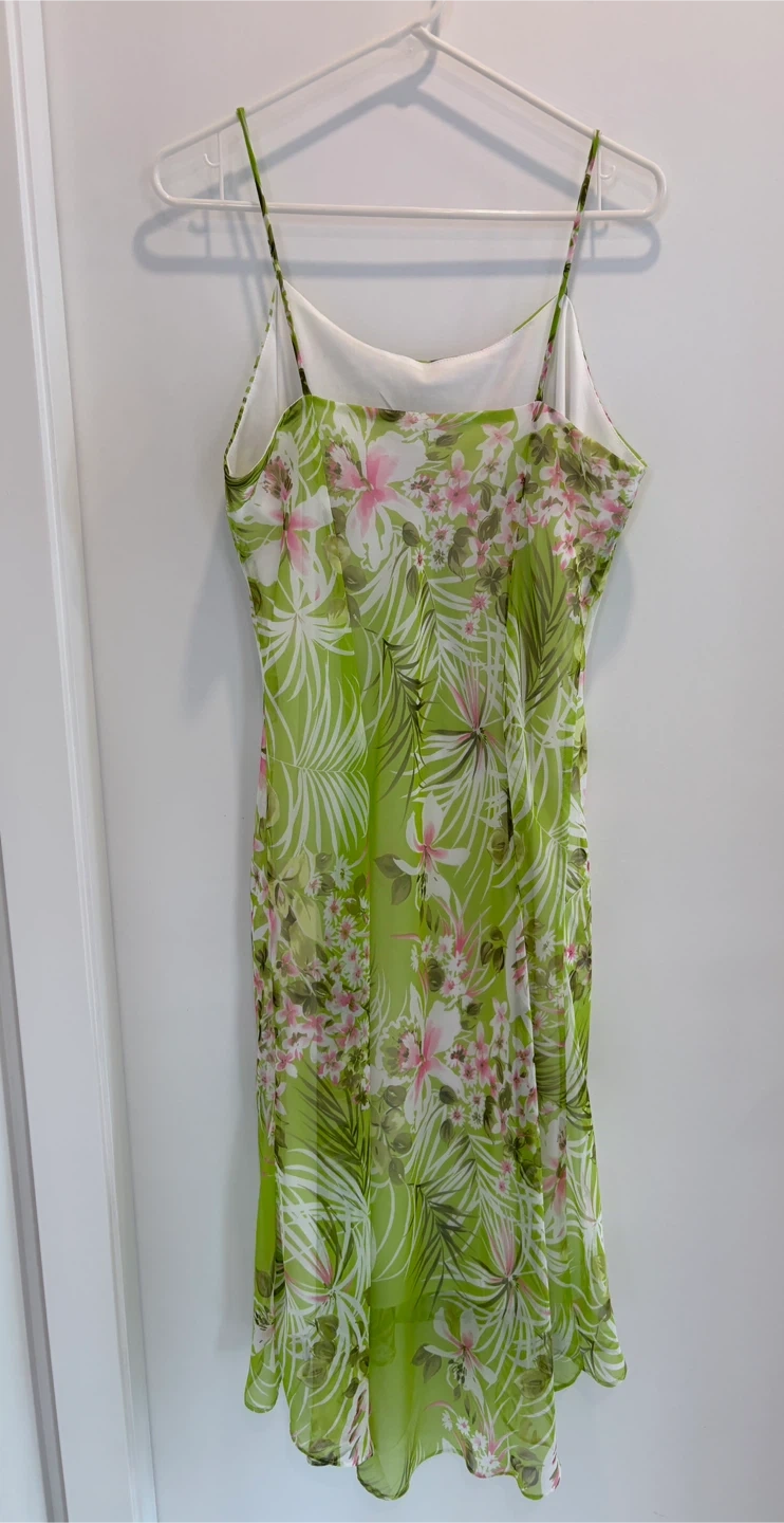 This is a Euro Mode dress with a green floral pattern. It's a lightweight dress. From smoke free pet free home.