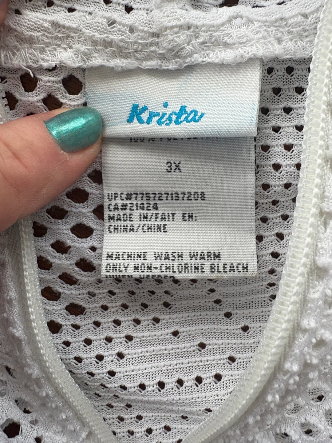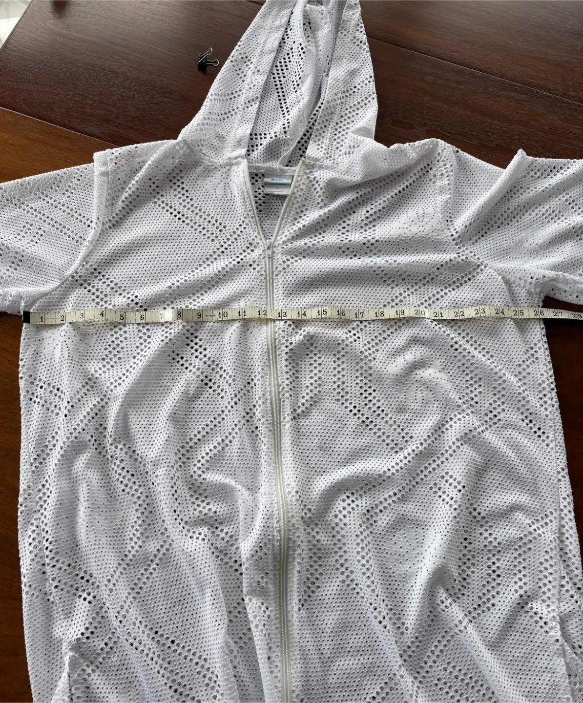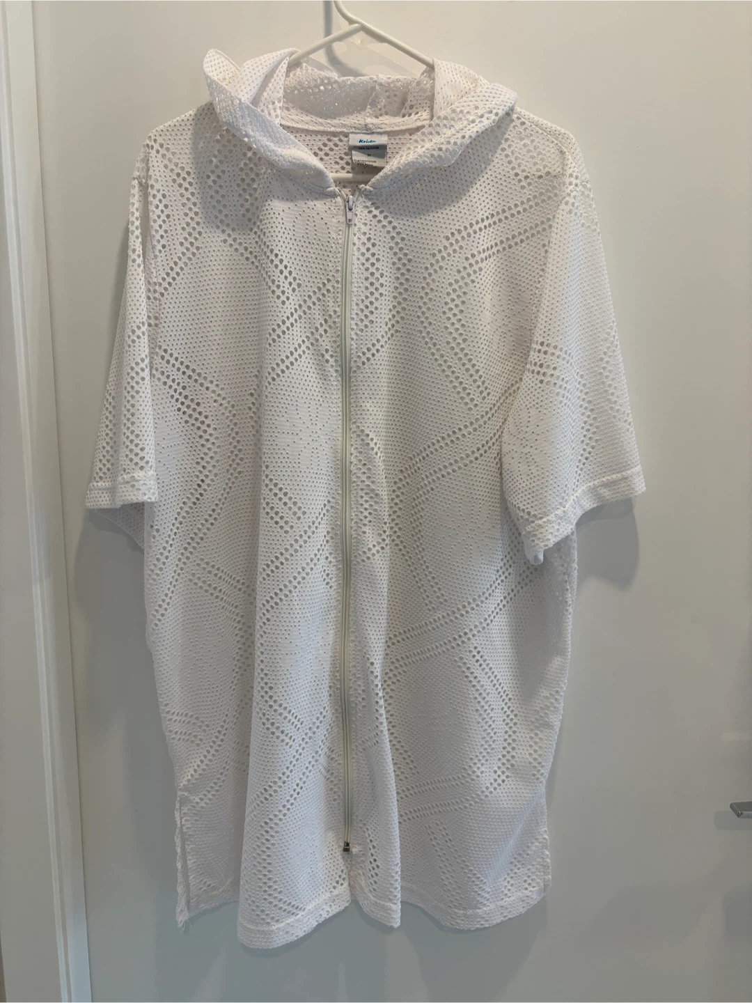 Krista white mesh cover up, 3X, a full front zipper and a hood. Machine washable too. From smoke free pet free home.