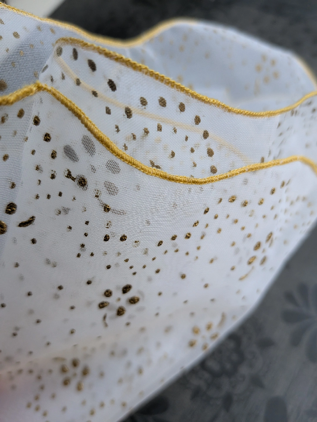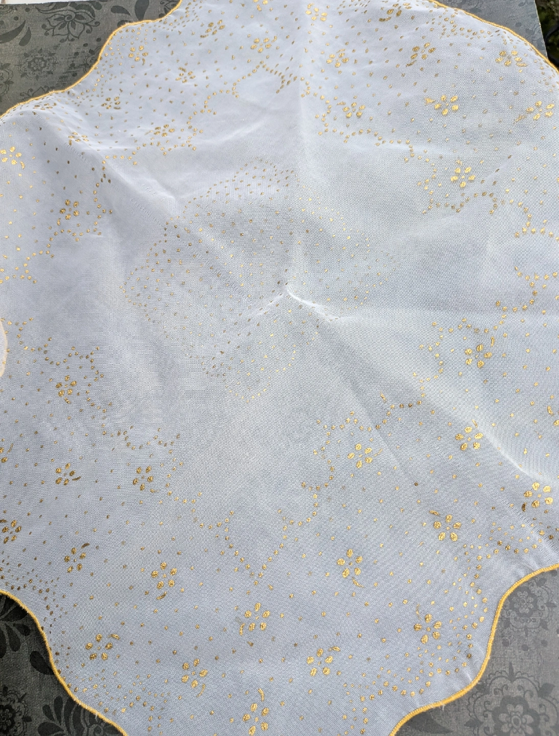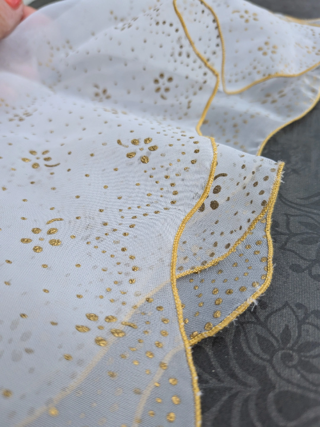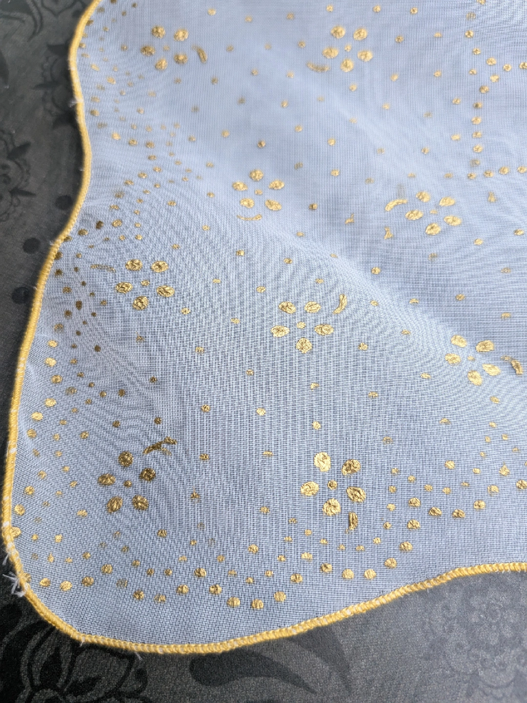 Selling a lovely sheer handkerchief from the 1950's era. It's a light white colour with gold polka dots and a gold trim. Not new, but fairly good condition with long faint snag along the middle. A little hard to see. Please see close up photos for details Discounts for multiple items purchases Cash only, no etransfers Location: Etobicoke. Rathburn Rd and Renforth dr. Etobicoke Olympium nearby