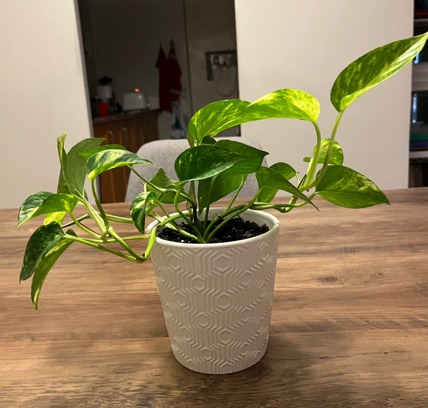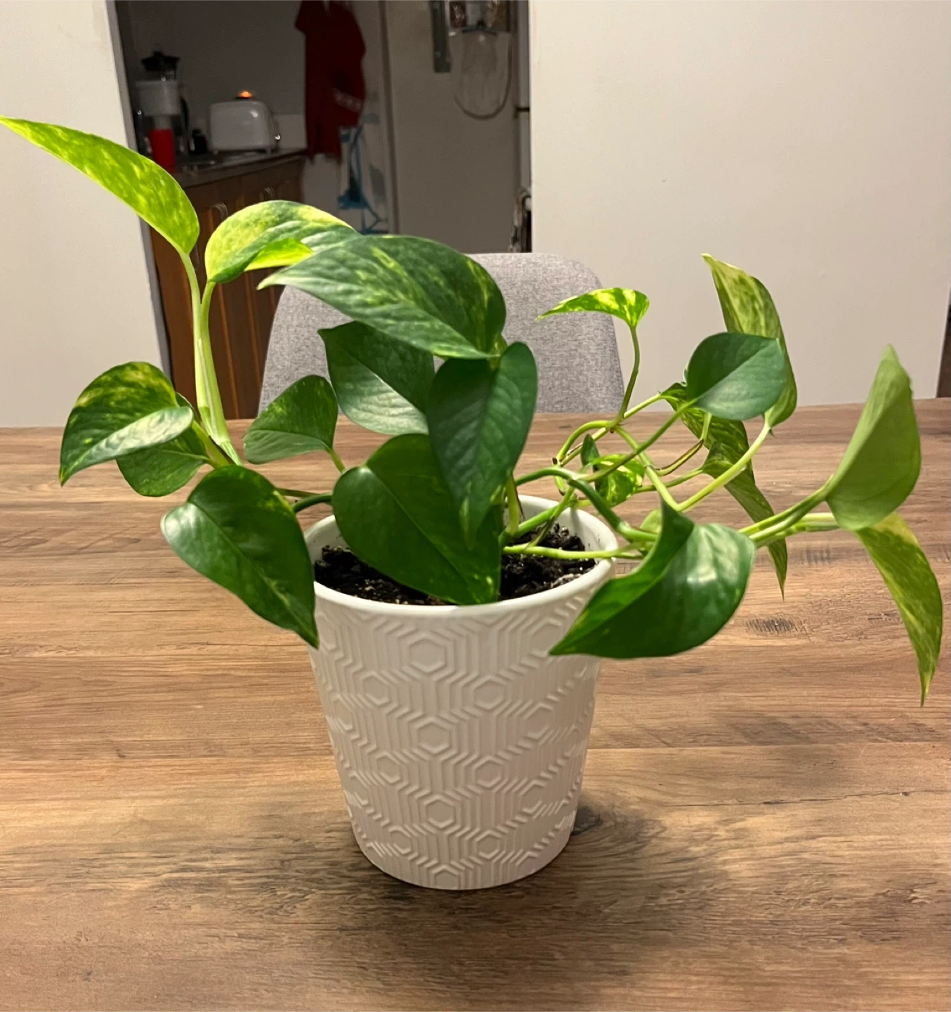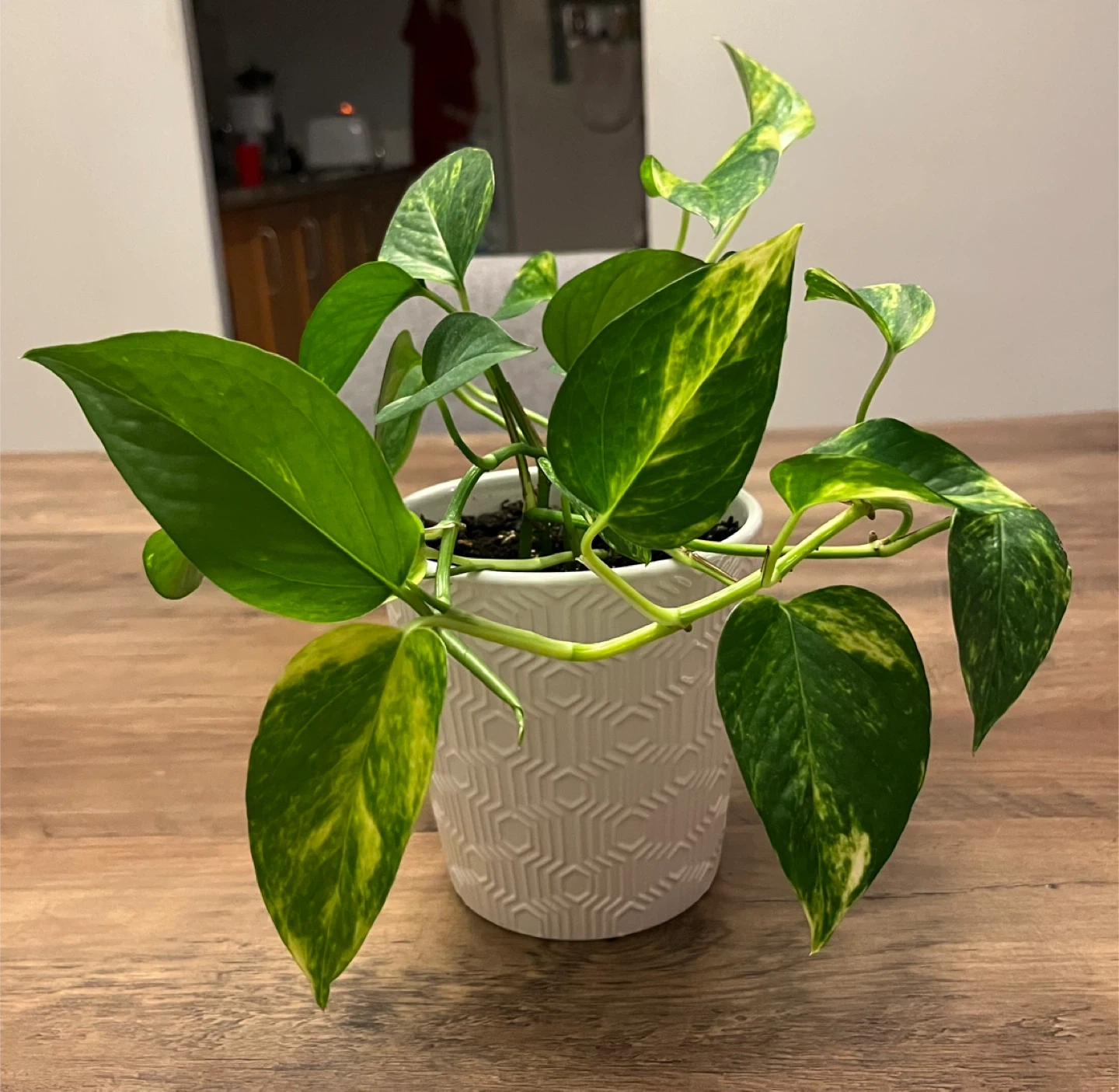 Selling a healthy pothos plant in a white pot! It's a vibrant addition to any indoor space and super easy to care for