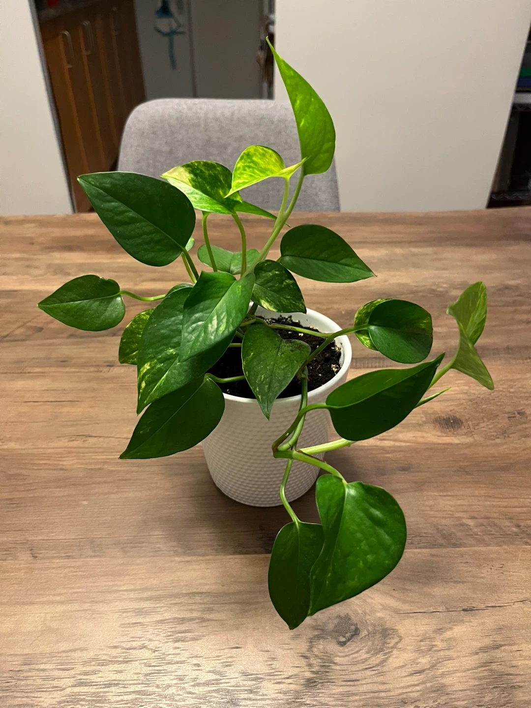 Selling a healthy pothos plant in a cute white pot! It's perfect for adding a bit of greenery to your home or office. Easy to care for and adds a nice touch to any space