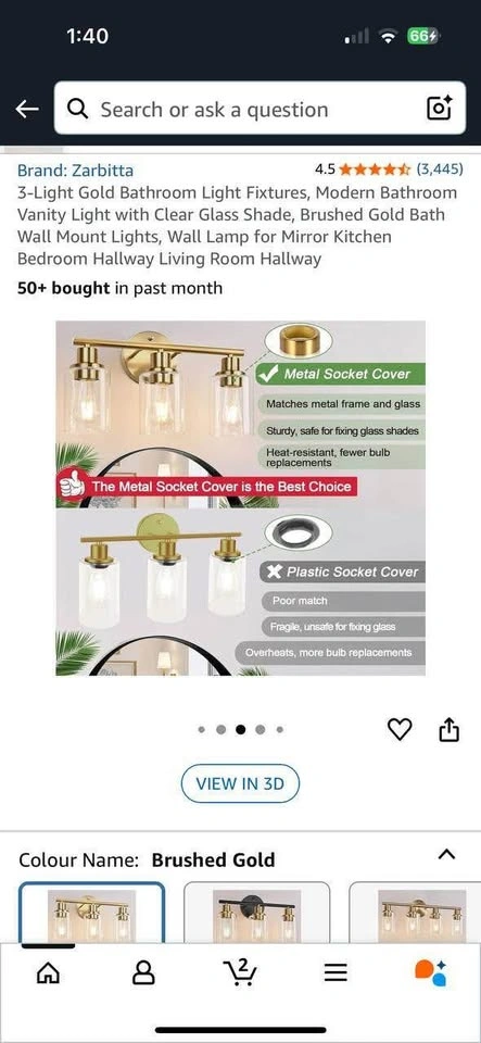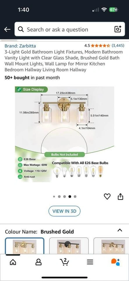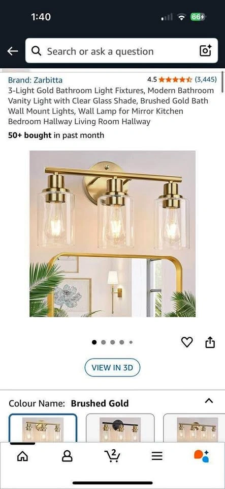 Modern wall light with clear glass shades and brushed gold finish. E26 sockets, bulbs not included. Great for bathroom or hallway. Brand New Dimensions in the photo. Pick up in Mahogany SE or Shawnessy SW