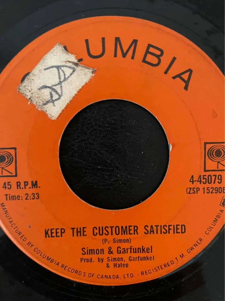 Canadian pressing on Columbia Records of Canada (4‑45079). A timeless 1970 single with Bridge Over Troubled Water backed by Keep the Customer Satisfied. Side A: Bridge Over Troubled Water Side B: Keep the Customer Satisfied Format: 7″, 45 RPM Canadian pressing with “manufactured in Can.” label text Pickup: West Queen West, Toronto
