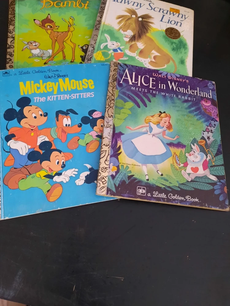 Selling a set of 50 classic Little Golden Books! Includes: - Bambi - Mickey Mouse: The Kitten-Sitters - The Tawny Scrawny Lion - Alice in Wonderland Meets the White Rabbit $35 for the set less than a dollar each