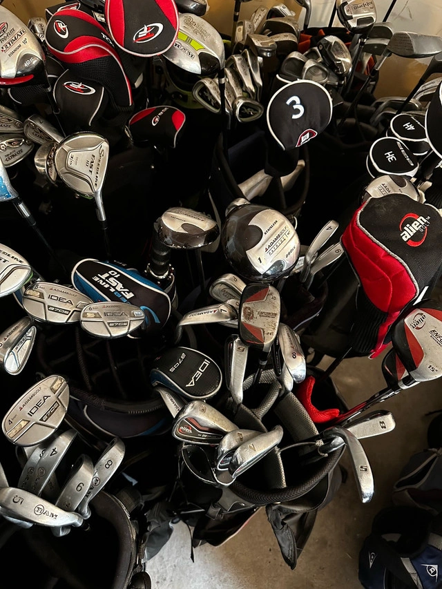 Lots of assorted clubs for sale to make sets out of for beginners who are looking for a cheap entry point into the sport. Prices for full sets start at 199 excluding bags and range up to 450+ Prices start as low as: Driver’s, Wood’s, & Hybrid’s: $14.99 Irons: $9.99 Putters: $19.99 Wedges: $19.99 Golf Bags: $39.99 Also have matching sets if that’s what you desire. We can adjust the amount of clubs to accommodate almost any budget and DISCOUNTS are offered for multiple club purchases. Titleist / Ping / Wilson / Dunlop / Taylormade / Callaway / Cleveland pool