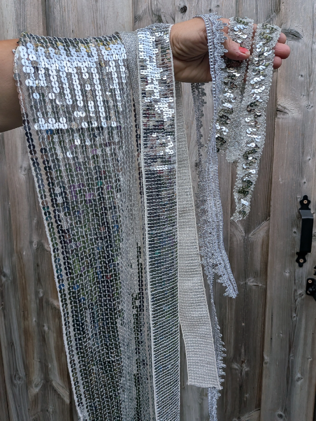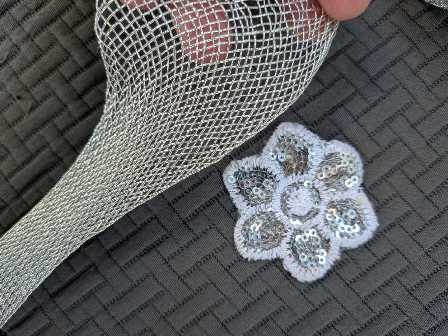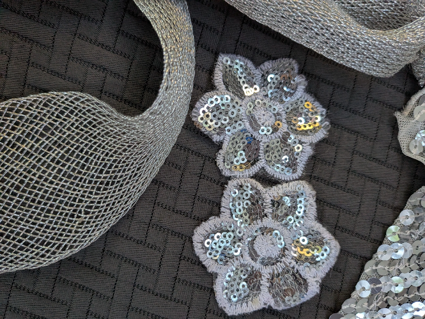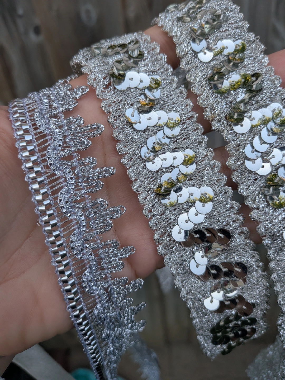 Sparkly silver vintage sequin trim and appliqués, perfect for adding some bling to your next project! Includes various styles of trim and two flower appliqués. All unused. One flower petal damaged a little. Great for crafts, costumes, or adding a little sparkle to anything Three pieces are about a yard long, two are longer Cash only, no etransfers Location: Etobicoke. Rathburn Rd and Renforth dr. Etobicoke Olympium nearby No holds, first come, first serve
