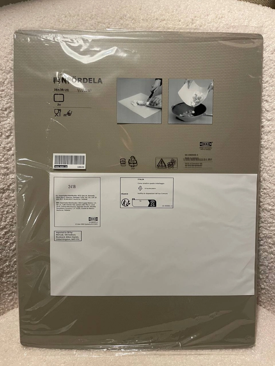 Selling a brand new IKEA FINNORDELA cutting board. It's grey and measures 38x28 cm. Never been used and still in its original packaging