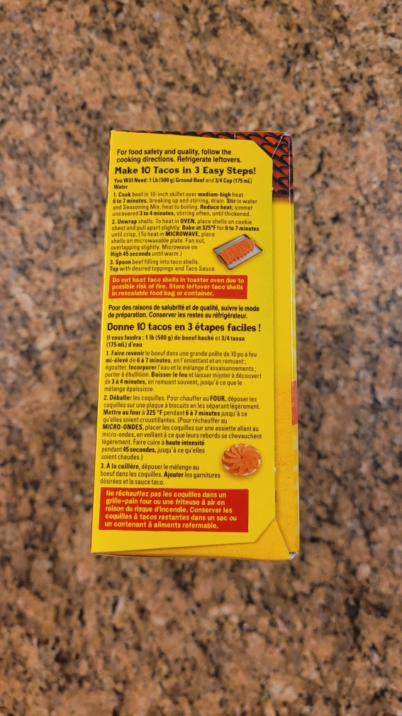 Selling a Old El Paso Bold Nacho Cheese Flavoured Taco Shells Dinner Kit. Includes 10 Stand 'N Stuff Shells, Taco Sauce, and Seasoning Mix. Enjoy making tacos in 3 easy steps!