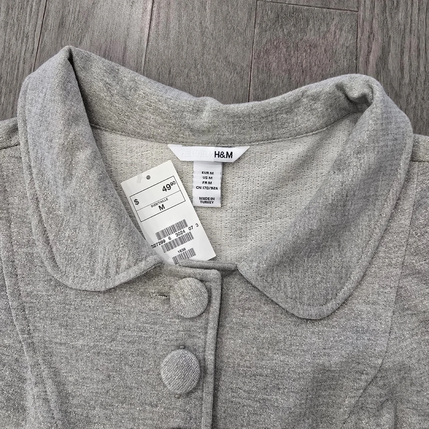 A cute H&M jacket in size M! It's a light grey colour and features a button-up front. Perfect for layering or wearing on its own. The original price was $49.90