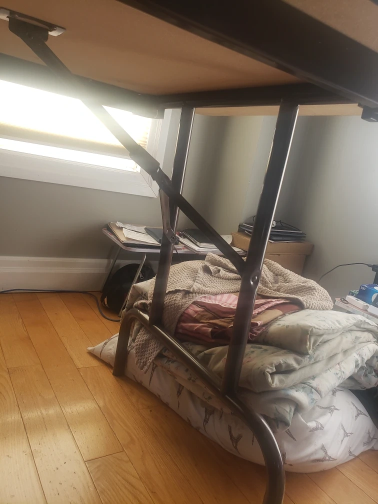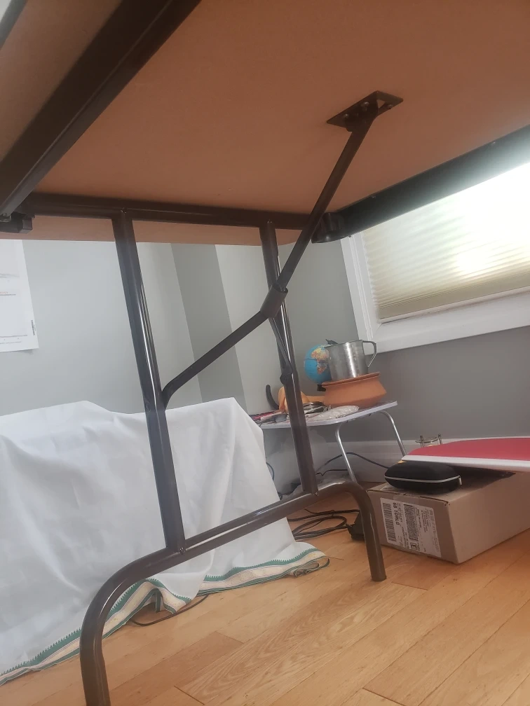 Selling a folding table in brown. It's great for extra space when you need it and easy to store away when you don't! table legs fold, but the table itself doesn't fold in the middle its in a good condition height is 29 inch length is 6ft width is 30 inch
