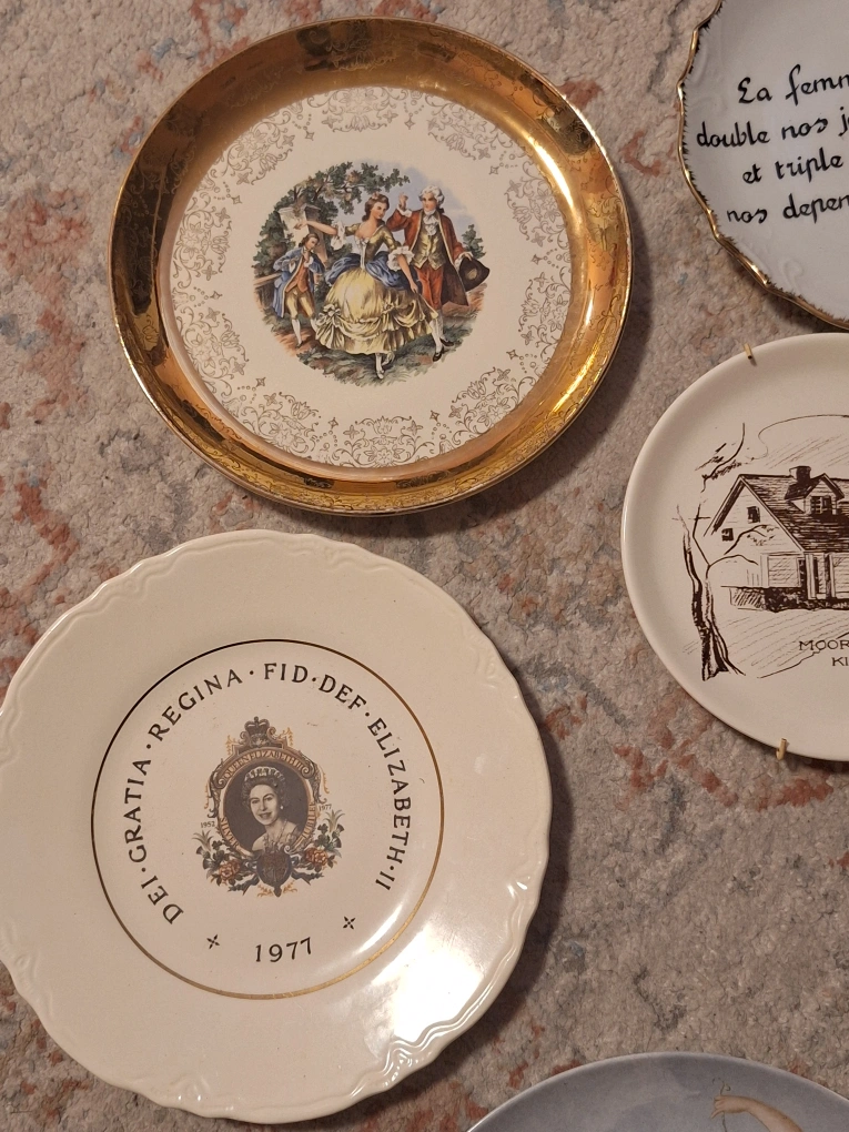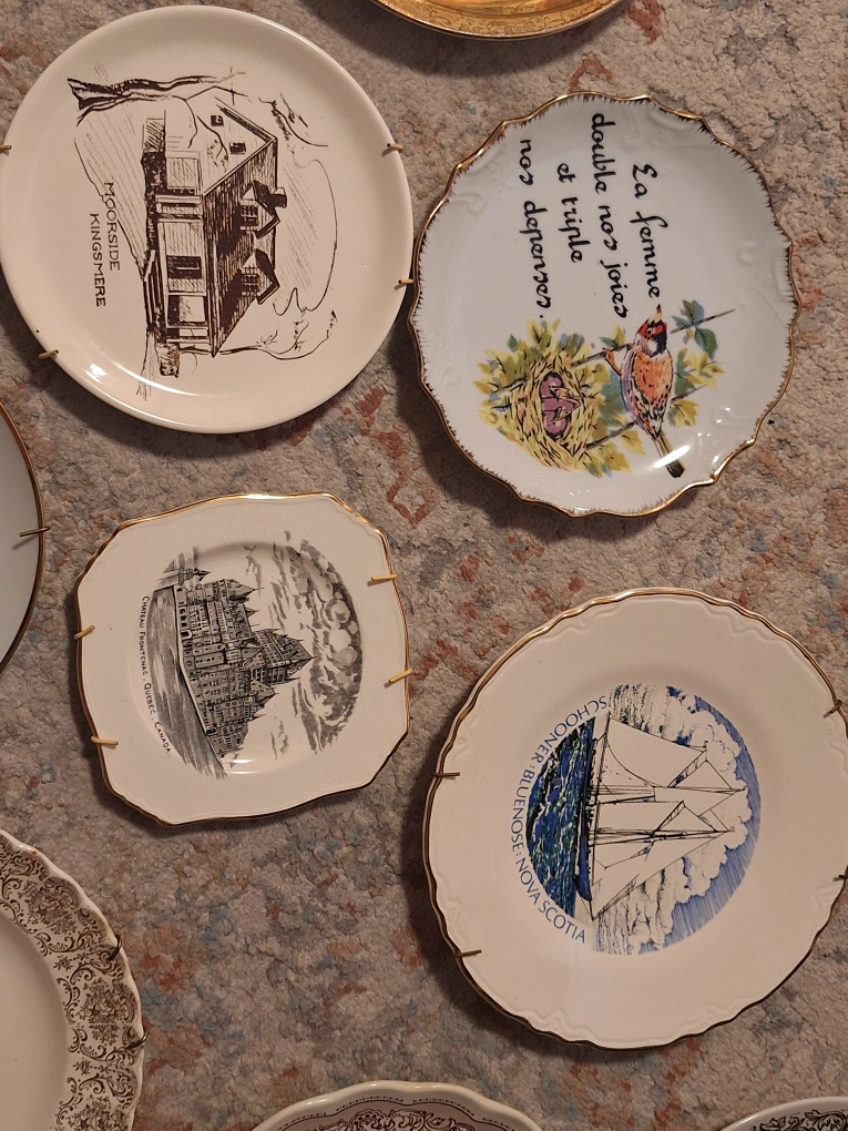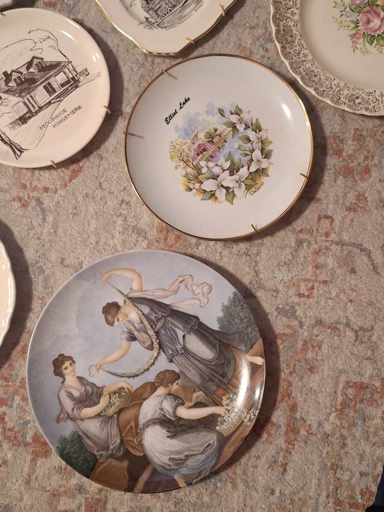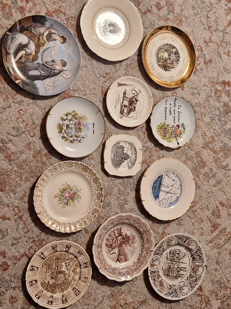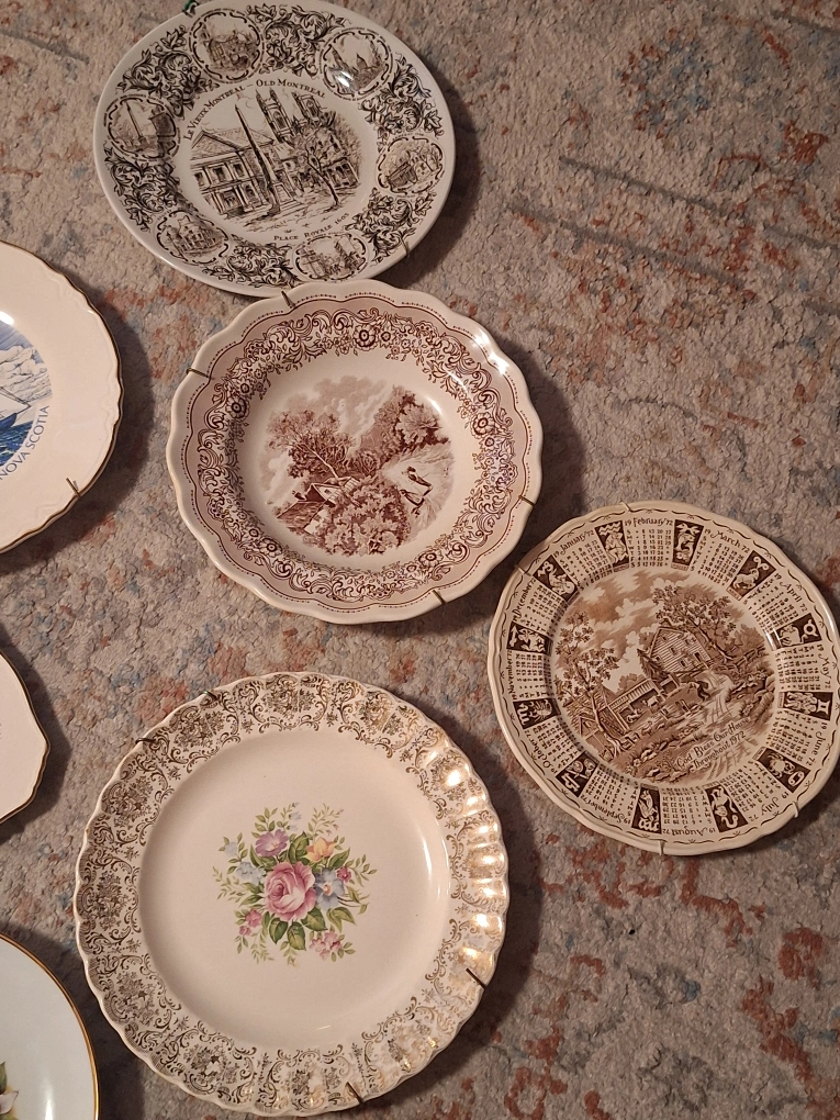 Selling a collection of vintage decorative plates. There are various designs and themes, including souvenir plates with scenes from different locations. Prise $15 for all, what is a little more than $1 each. Do not sell by 1 plate.