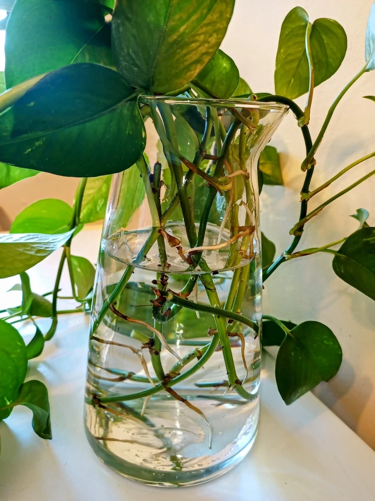Beautiful, healthy well-rooted pothos cuttings in new glass vase $5 all together Sheppard and Bayview