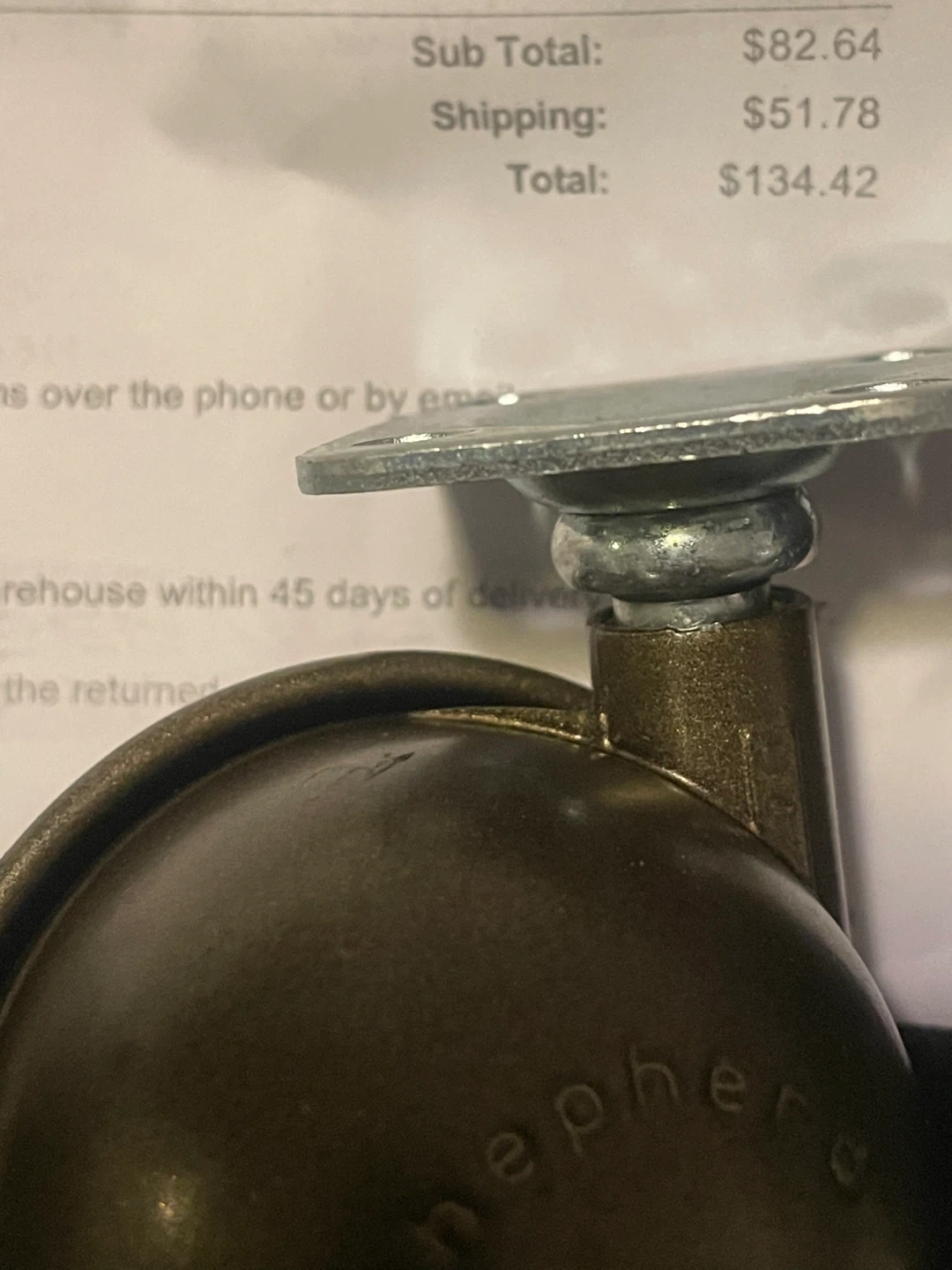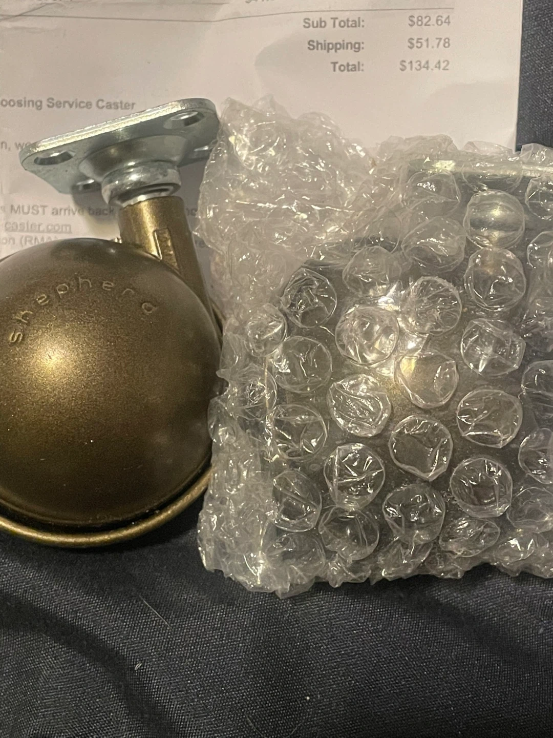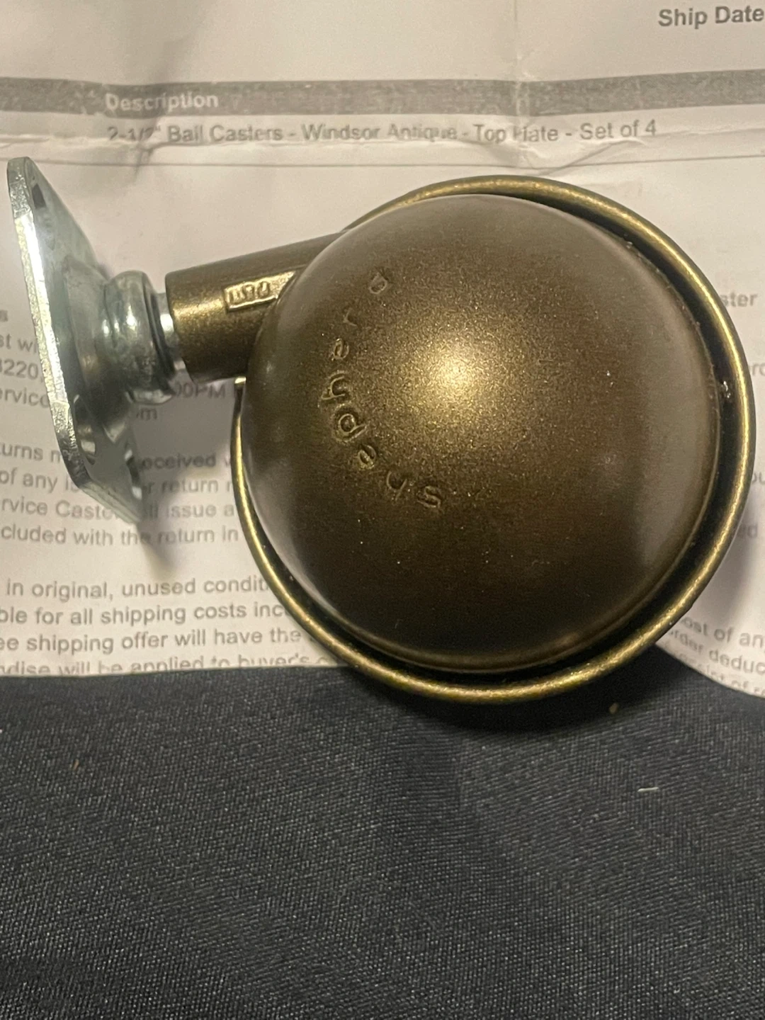 Selling a set of four Shepherd 2-1/2" ball casters in Windsor Antique finish. These top plate casters are brand new and still in their original packaging. They were originally bought for $134.42, including shipping. Perfect for adding a touch of vintage charm to your furniture!