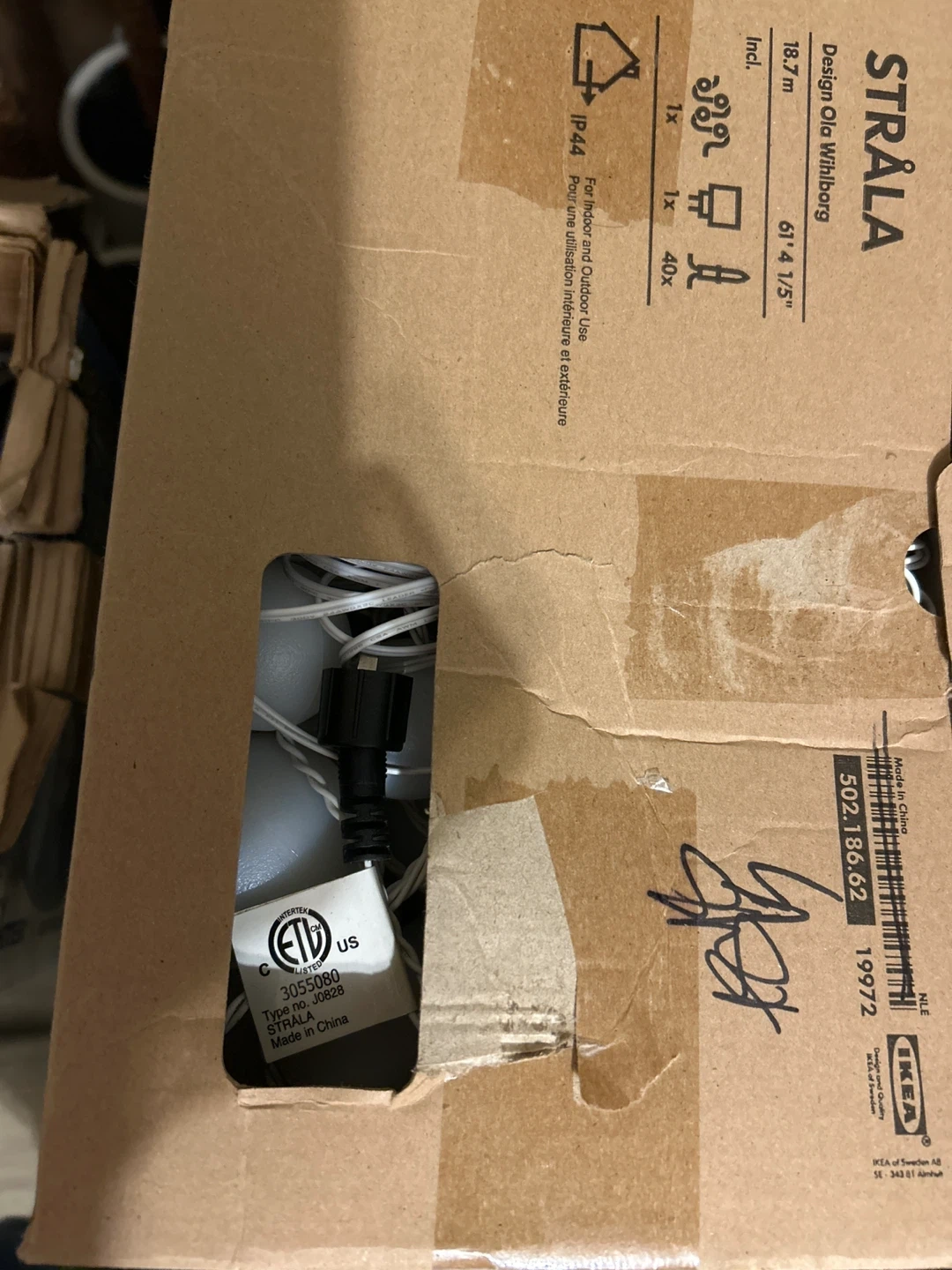 Selling a set of IKEA STRALA string lights! These are suitable for both indoor and outdoor use. The total length of the lights is 18.7 meters (61'4 1/5"). The box includes 1x of the light string and 40x bulbs. Great for adding a cozy touch to your space