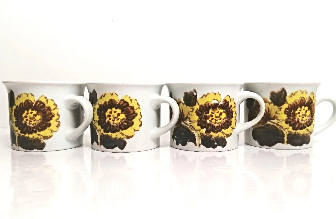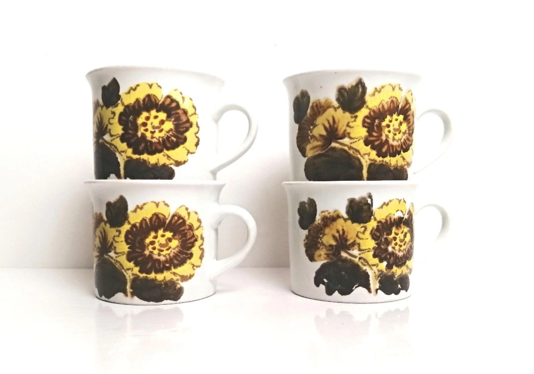 Fantastic four piece set of Royal Doulton stoneware mugs. 'Forest Glen' pattern. Each measure 3.5 inches in diameter and will hold 8 fluid ounces. Good vintage condition. Great retro vibe. π PICK UP TOWNLINE HWY 2 AREA π CASH is preferred please π Thanks for looking π©΅