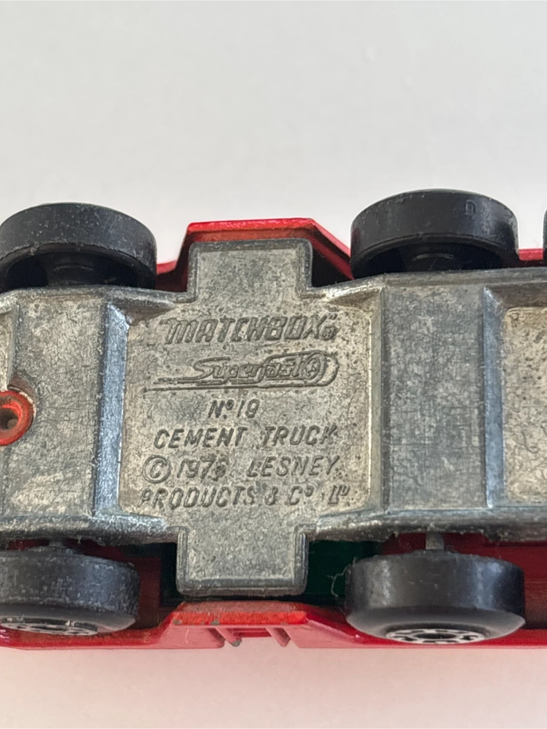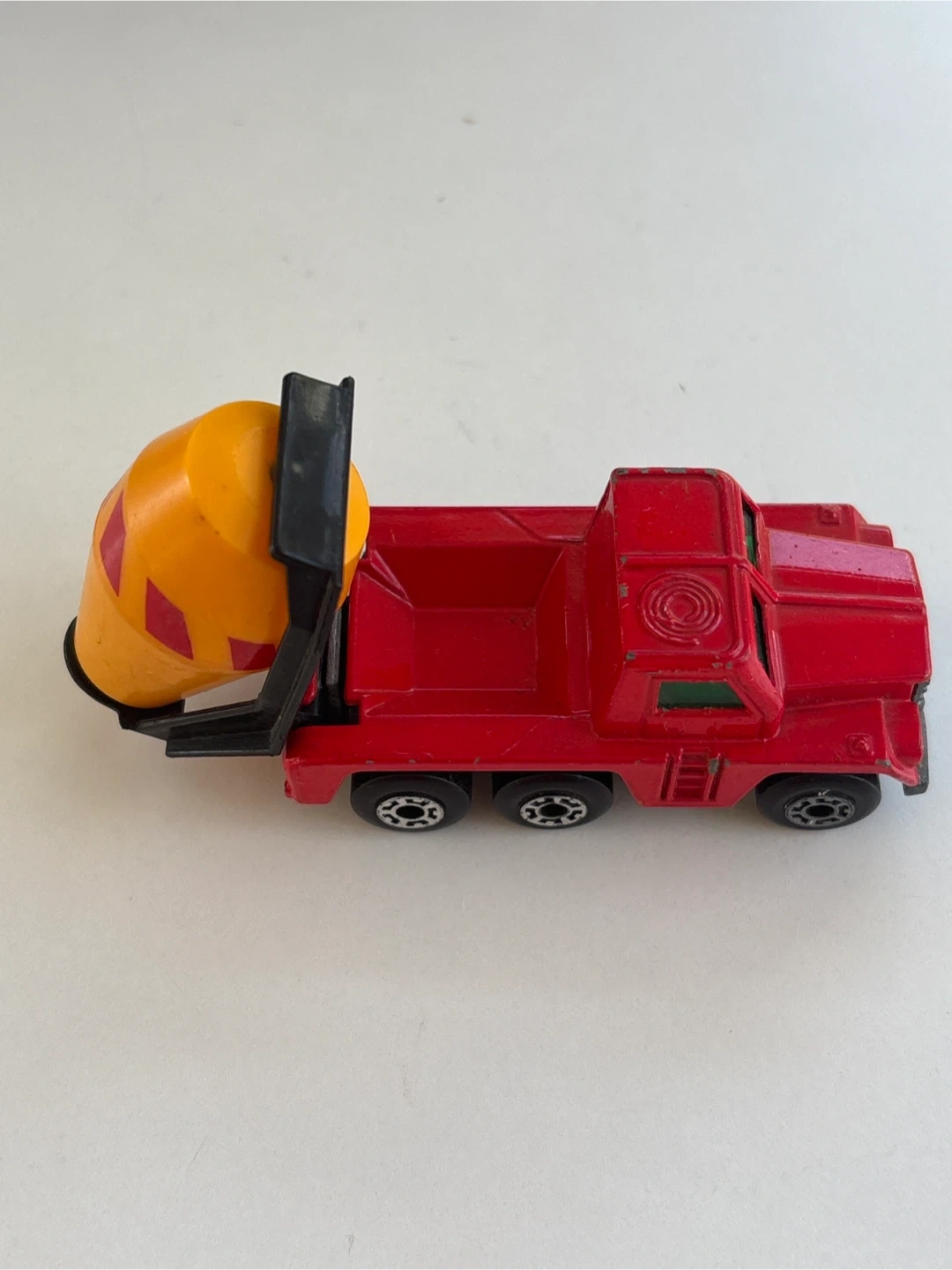 Selling a vintage Matchbox Superfast No. 19 Cement Truck from 1975! This little red truck with its yellow cement mixer is a cool piece of toy history. It's a fun collectible or a great toy for kids who love trucks