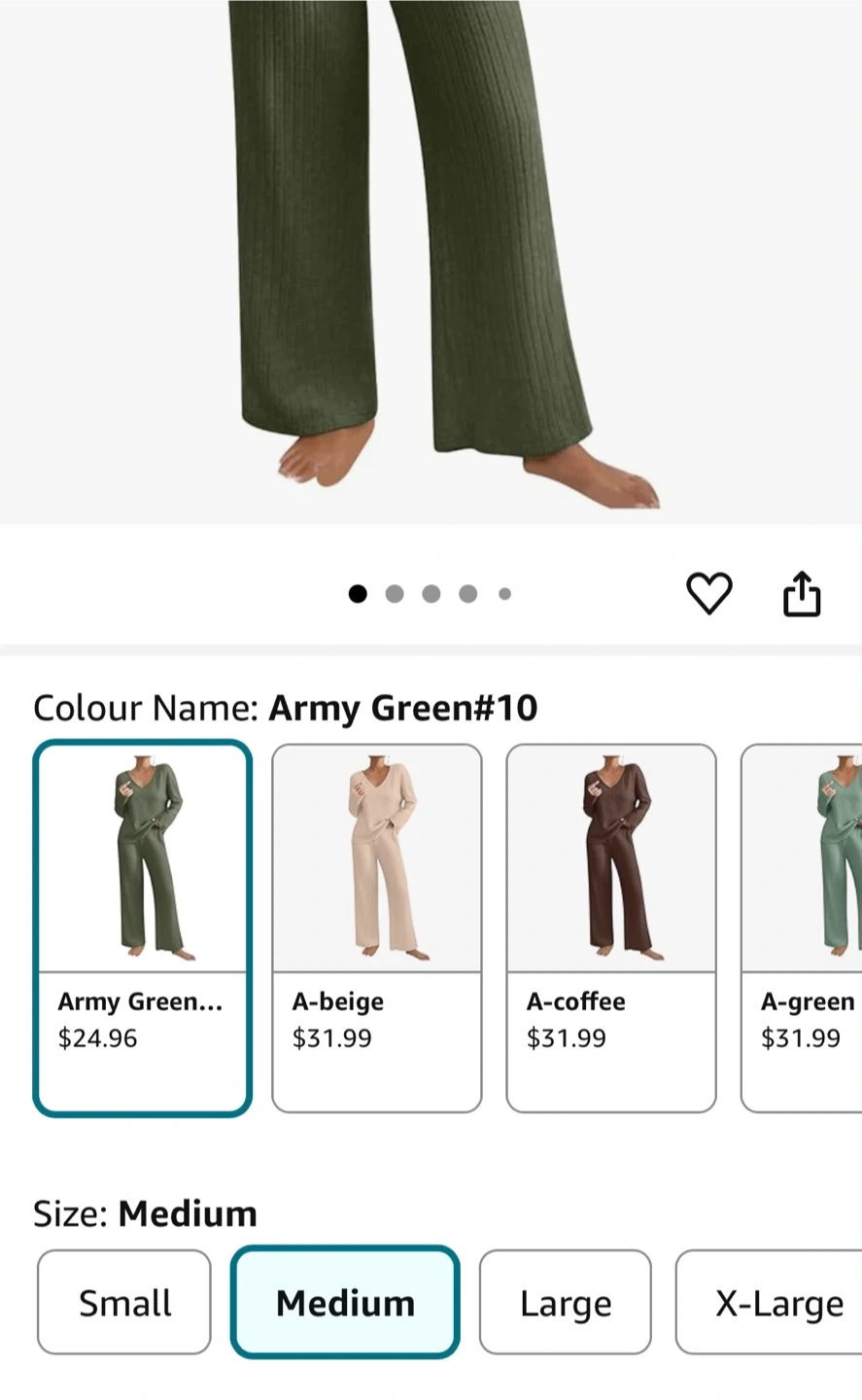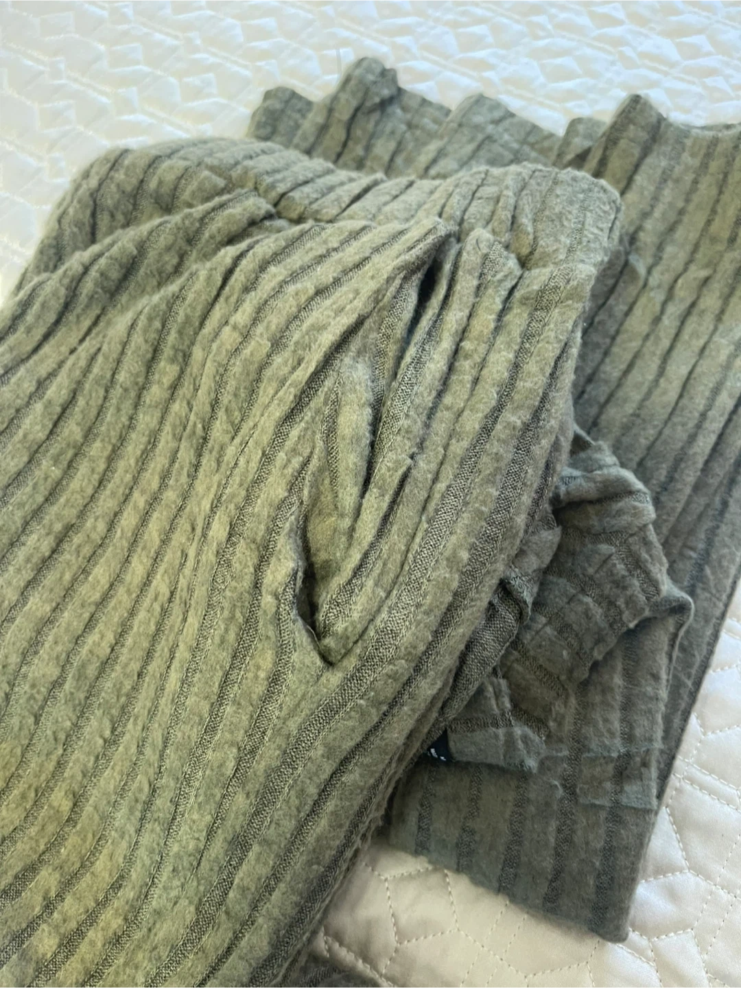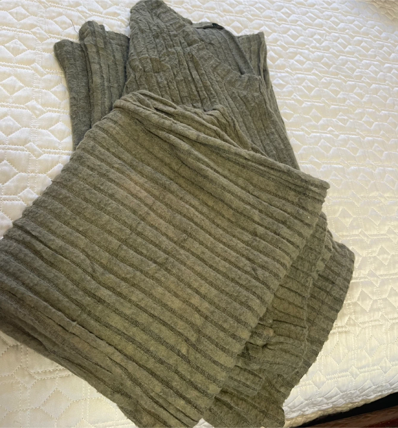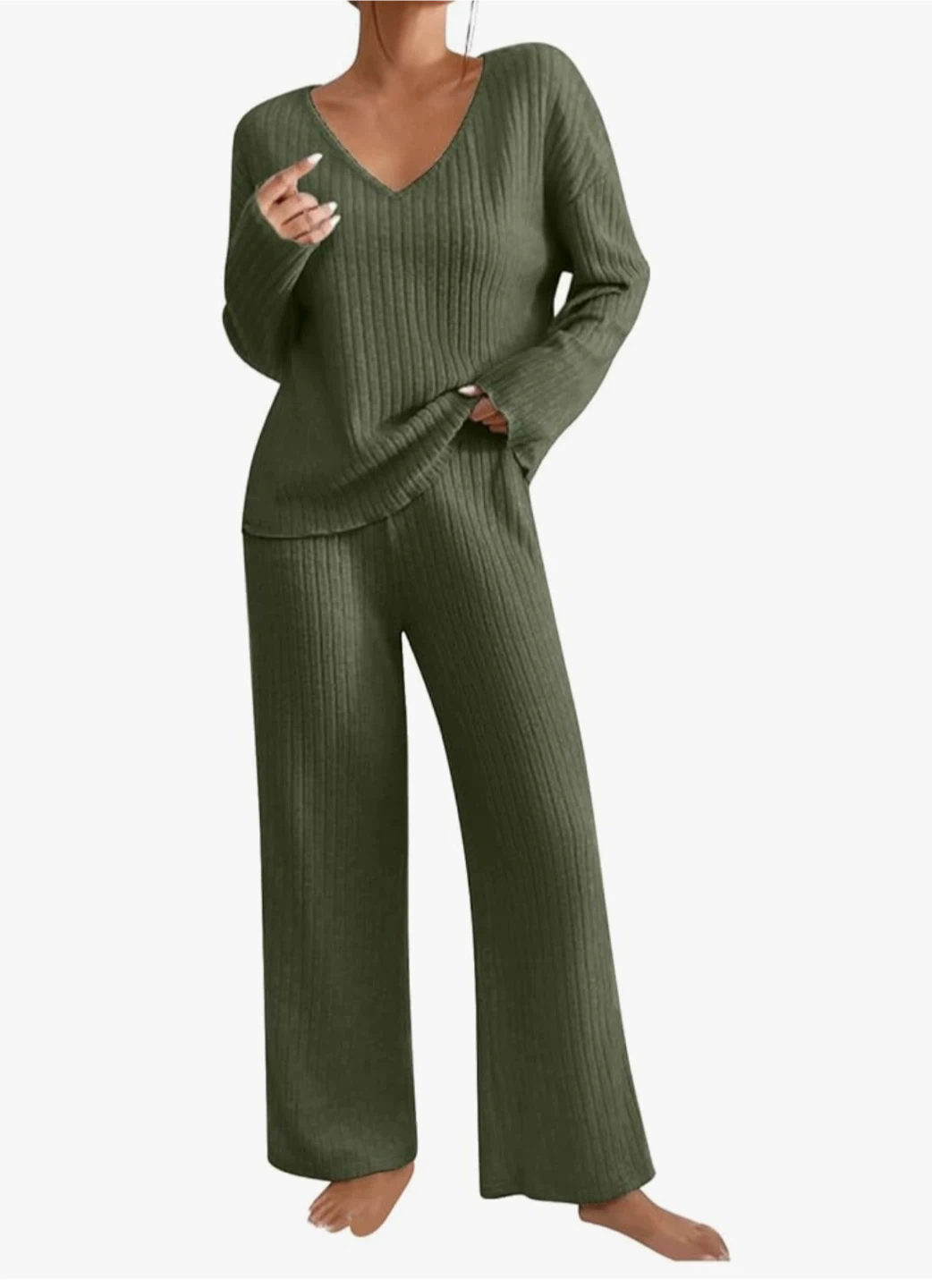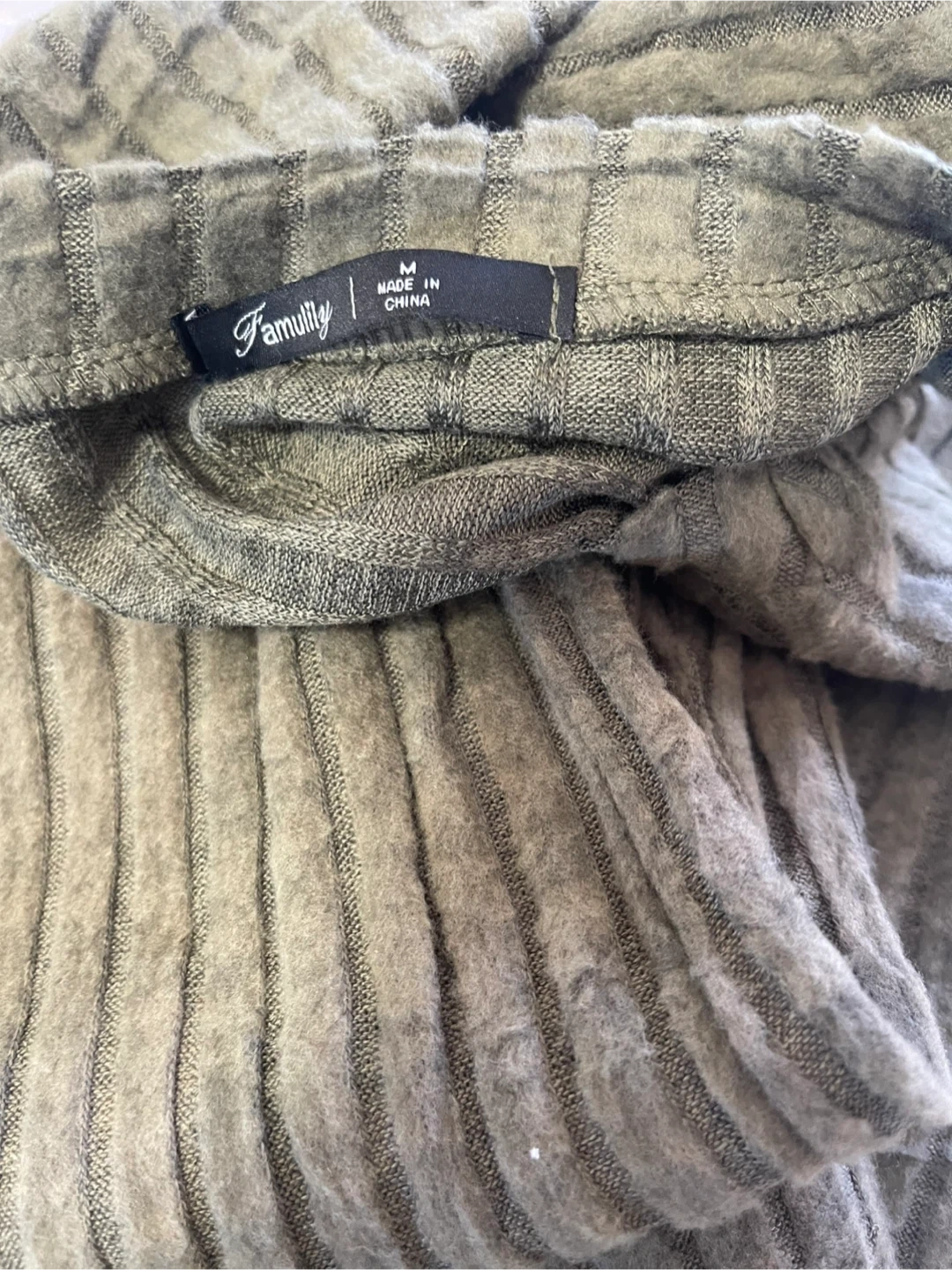 Cozy Famulily ribbed knit lounge set in army green, size medium! It's super comfy and perfect for relaxing at home. The material is soft and has a nice ribbed texture. A great addition to your loungewear collection!