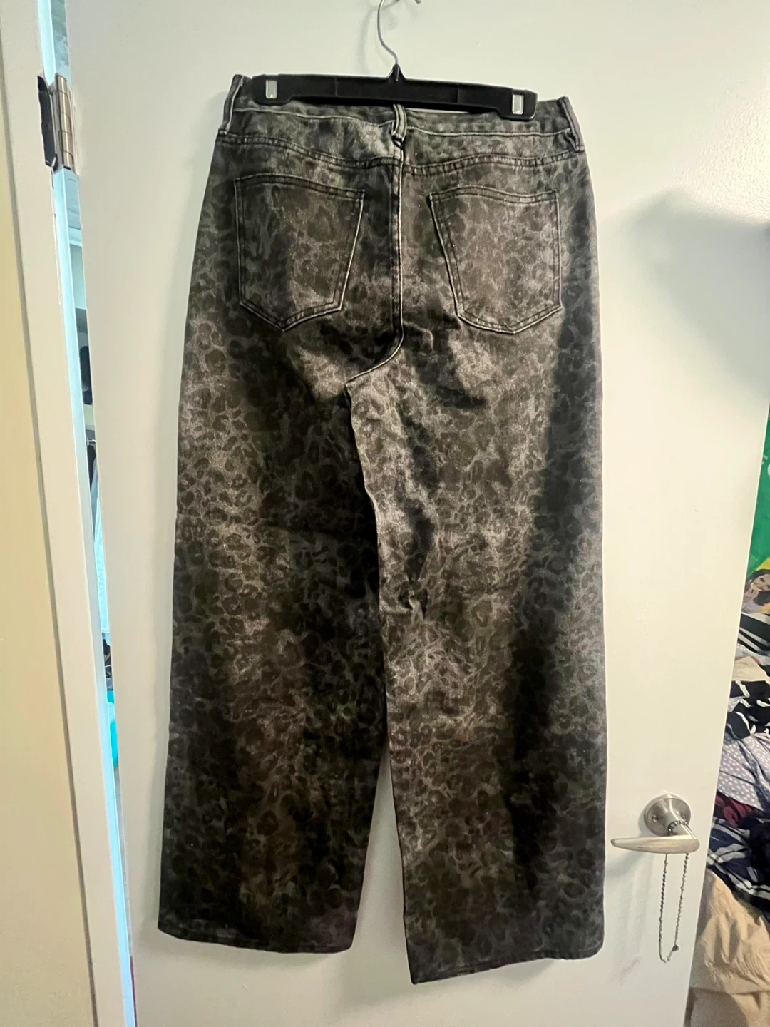 Selling a pair of Fashion Nova jeans in size 9! They have a cool leopard print and are made of 100% cotton Pickup downtown and cash only