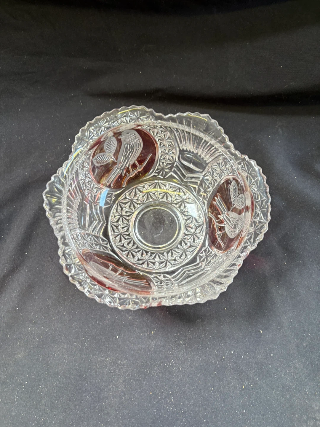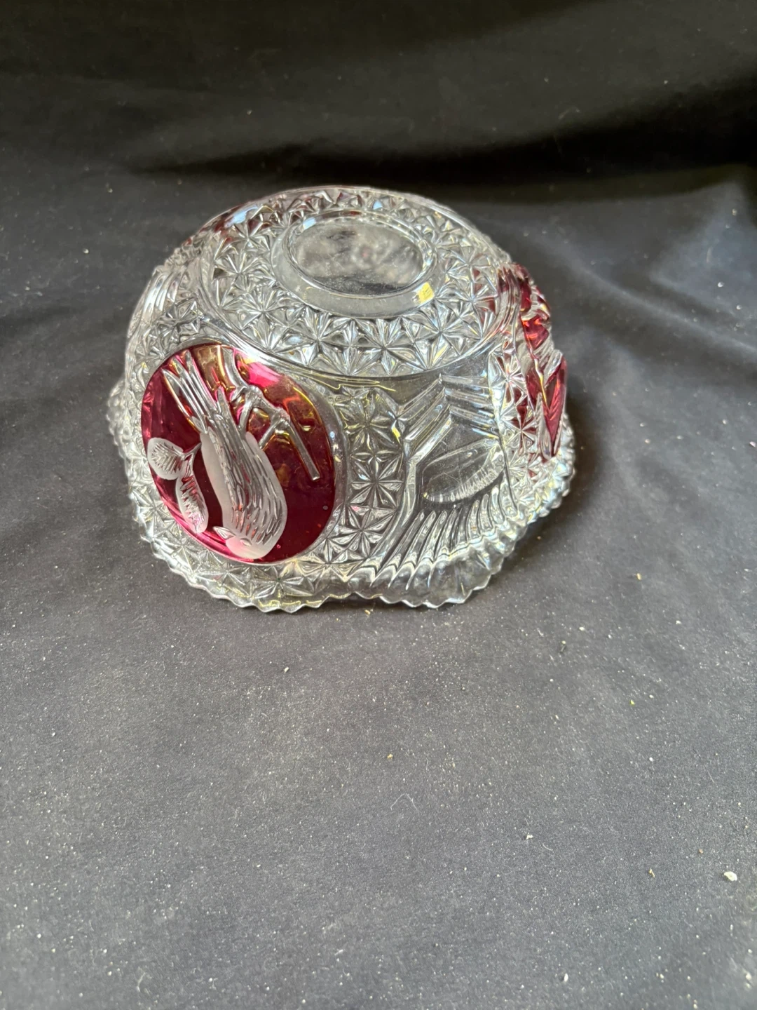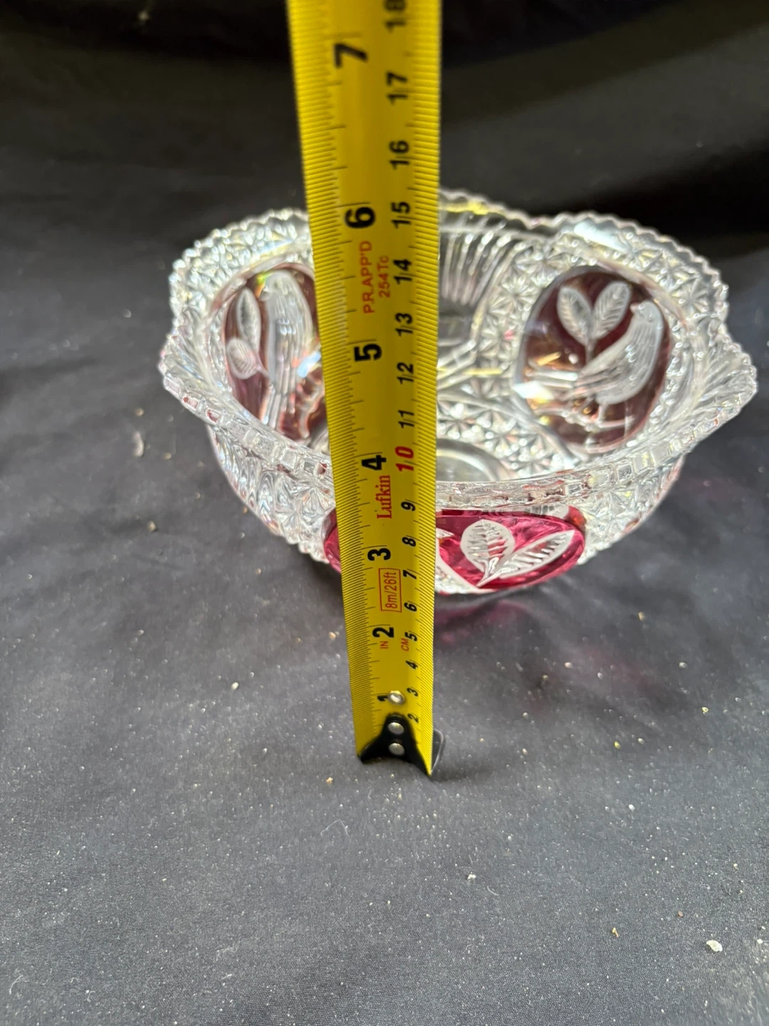 🧡like new Crystal Bowl with Red Accents Beautiful crystal bowl featuring intricate designs and lovely red accents. It's in great condition and would make a wonderful addition to any home Measurements in last couple of pics $12 Pick up Victoria Park & O’Connor area