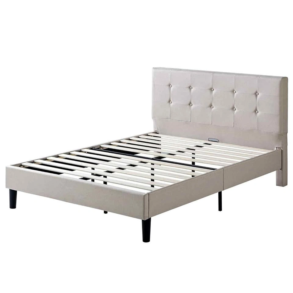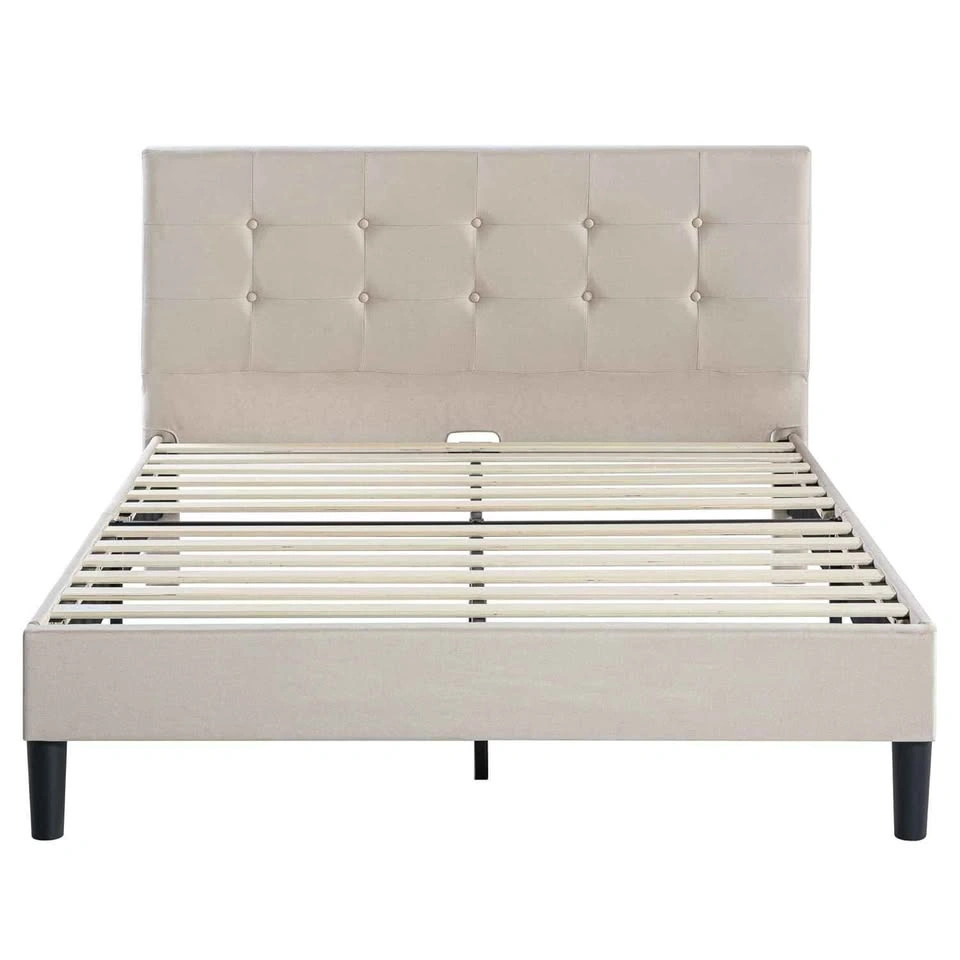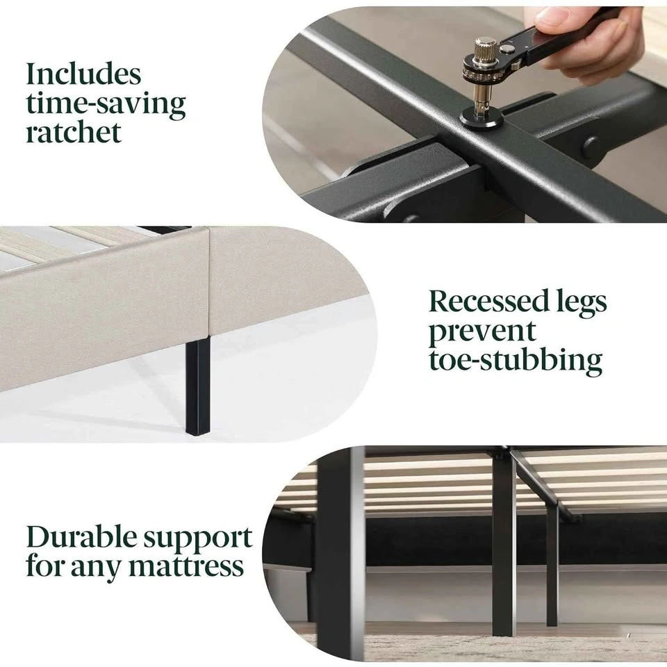 Brand new bed frame. It comes unassembled in original box with all manufacturer parts and hardware for easy assembly. * Only the bed frame for sale. Mattress not included. Retails at Amazon for $288 ($255 + tax). Save your money. Pickup from south London. I can deliver in London for an extra fee. Zinus Full Bed Frame - Ibidun Upholstered Platform Bed Frame, Squared Button Tufted Headboard, Bed in a Box, Wood Slat Support, No Box Spring Needed, Easy Assembly, Beige, Double Size Product details: Size: Full/ Double Material: Alloy Steel, Engineered Wood, Fabric Product Dimensions: 2.01L x 1.44W x 1.09H Meters Style: Contemporary Special feature: No Box Spring Needed, Upholstered Colour: Beige A STYLISH MATCH FOR YOUR MATTRESS - With the sophistication of classic button tufting and the comfort of plush foam padding, the Ibidun Platform Bed completes a cozy chic ambiance for your bedroom DURABLY DESIGNED - Interior steel framework and dense foam padding add comfort and longevity; twin size supports a maximum weight capacity of 350 lbs, while all other sizes can support up to 700 lbs NO BOX SPRING NEEDED - Durable wood slats support and extend the life of your latex, memory foam or spring mattress without the need for a box spring EASY ASSEMBLY – Everything you need is efficiently packed into one box and shipped straight to your door; all parts, tools and instructions are conveniently located in the zippered compartment of the headboard for easy, two-person assembly in under an hour Mattress sold separately