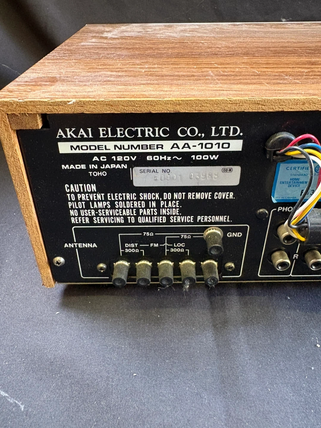 🧡okay condition Akai AA-1010 Stereo Receiver Selling an Akai AA-1010 stereo receiver. It features a wood grain finish and a silver faceplate. It has multiple knobs for adjusting bass, treble, volume, and balance. There are also buttons for loudness, mode, and tape monitor. Perfect for anyone looking for a vintage audio experience! $45 Pick up Victoria Park & O’Connor area