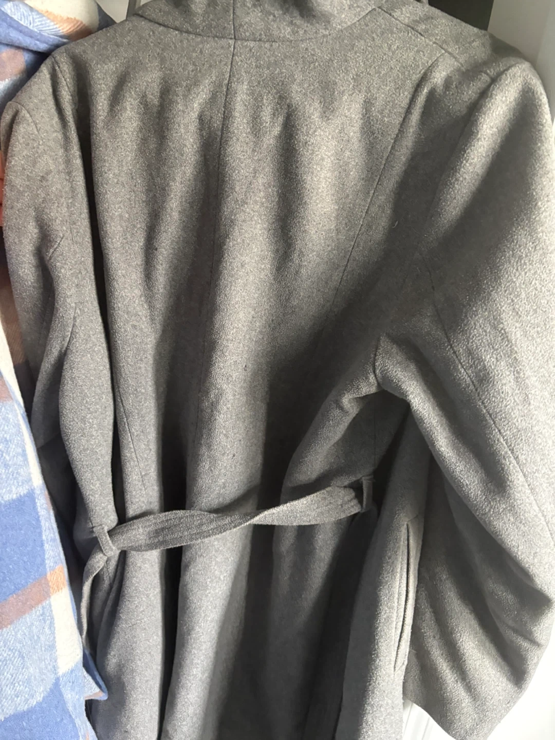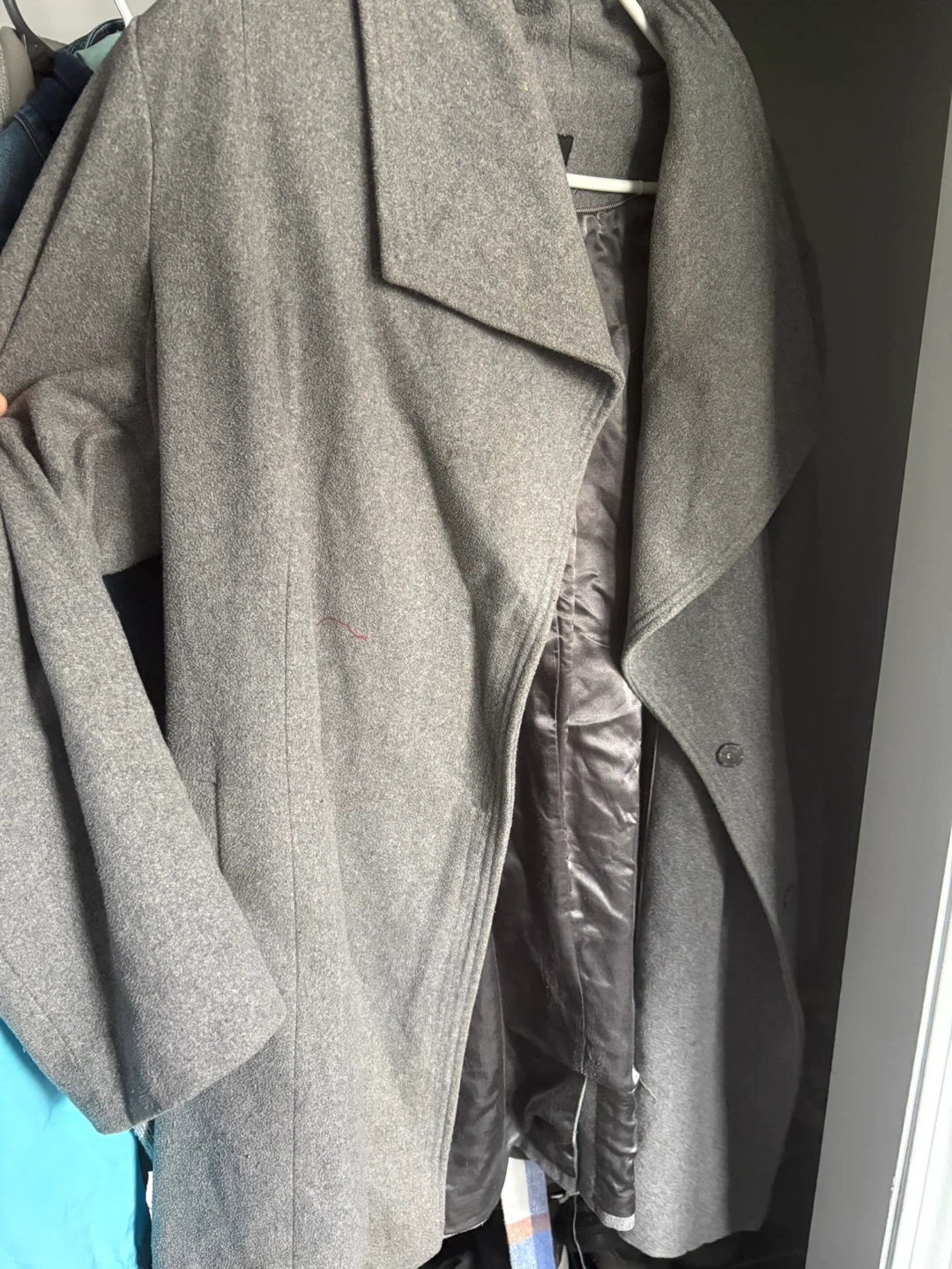 Selling a lovely grey Reitmans coat in a size 2X. It's a wool blend and has a stylish design with a belted back. Perfect for keeping warm this fall and winter!