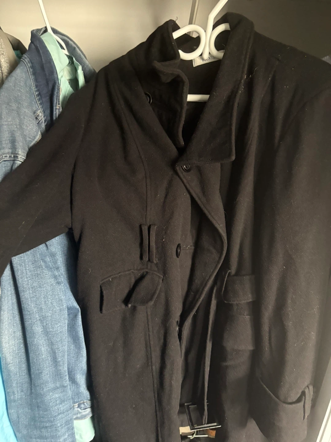 Selling a reitmans black wool blend coat in size XXL. It's in great condition and ready for a new home!