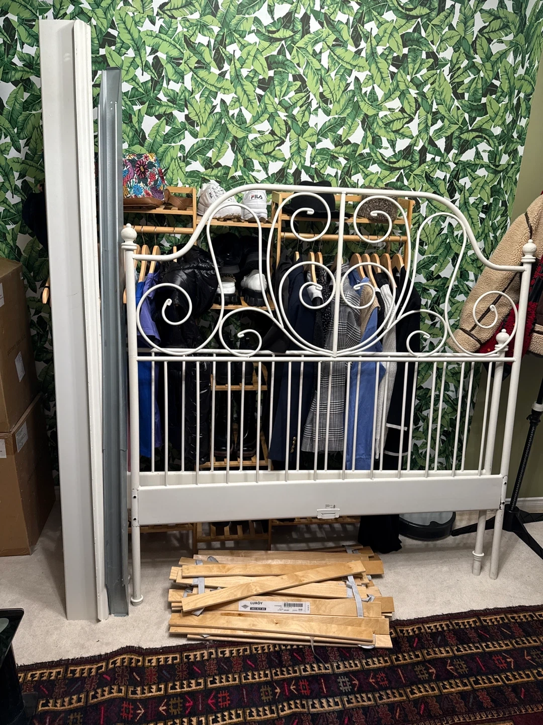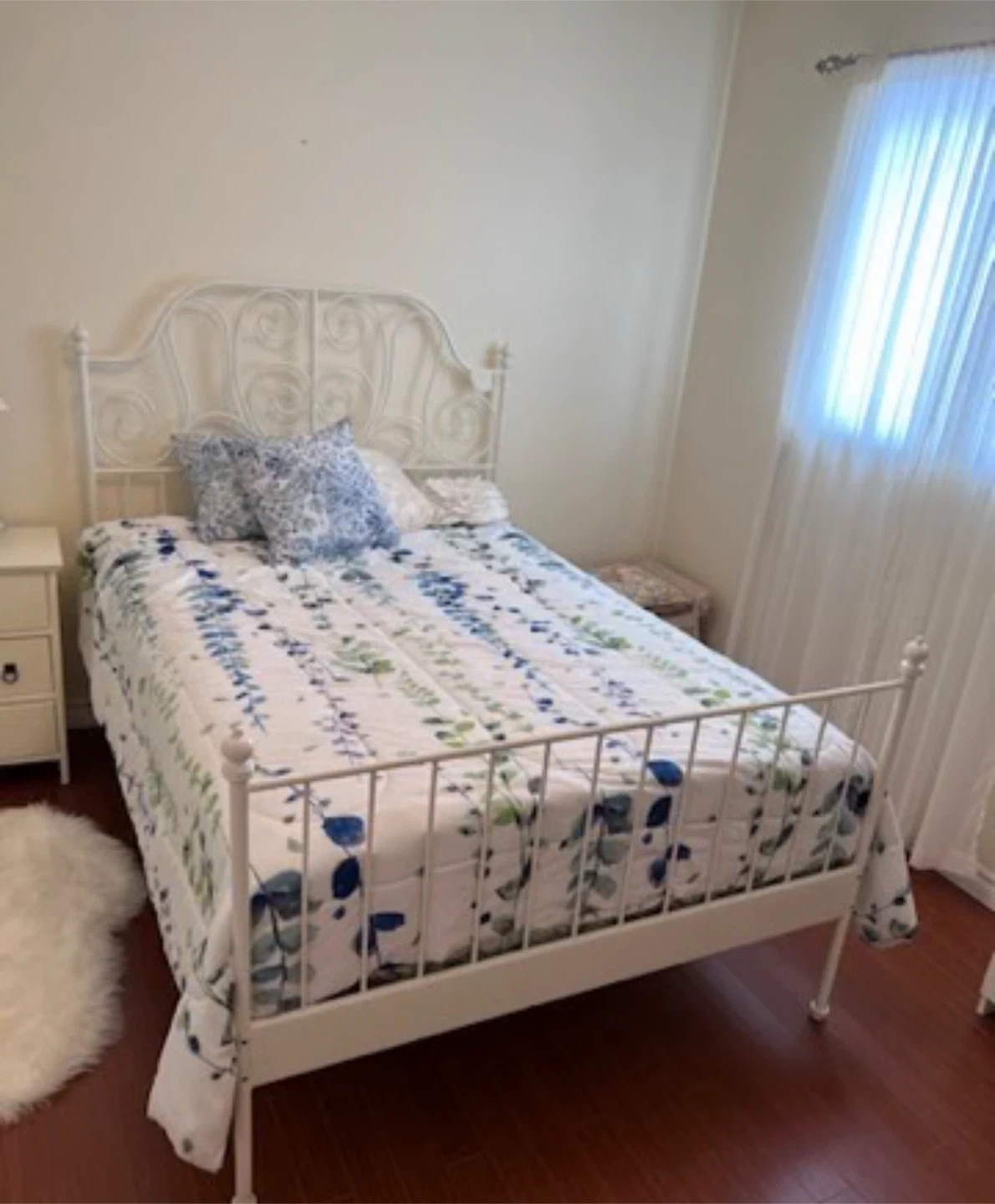 Selling a white IKEA Liervik bed frame in great condition! It's a stylish and sturdy bed frame that will look great in any bedroom. It's easy to assemble and disassemble, making it perfect for moving. Screws not included.