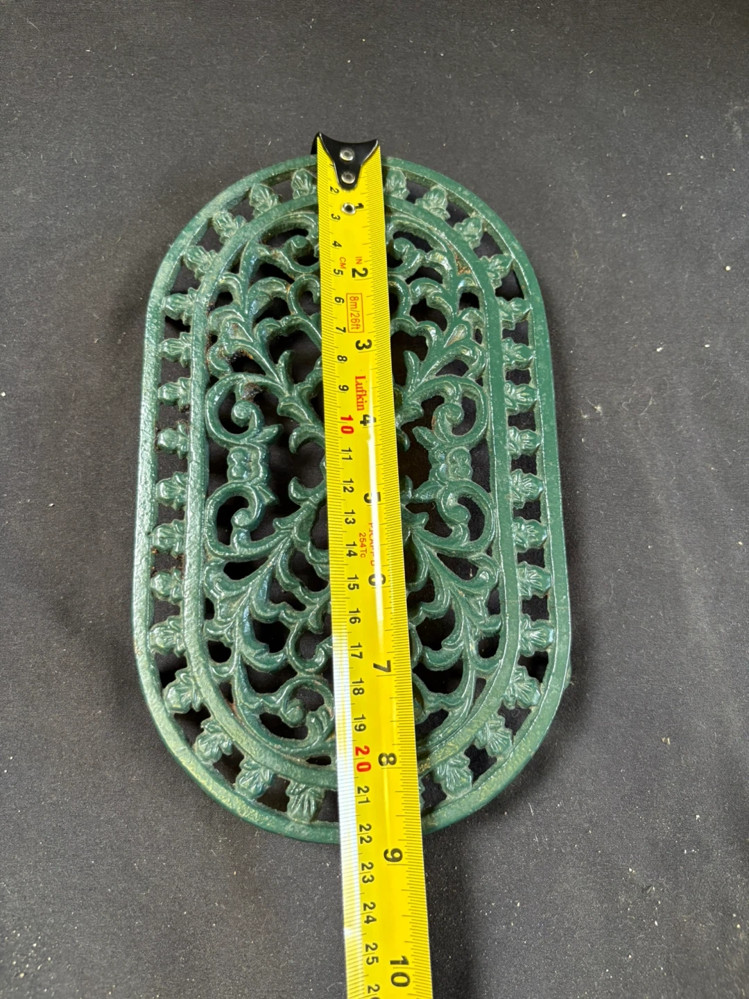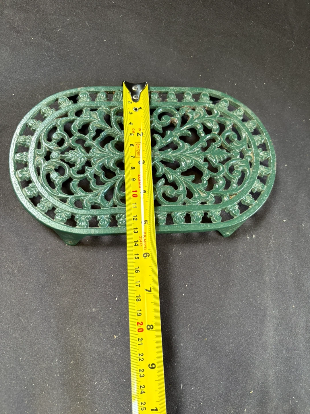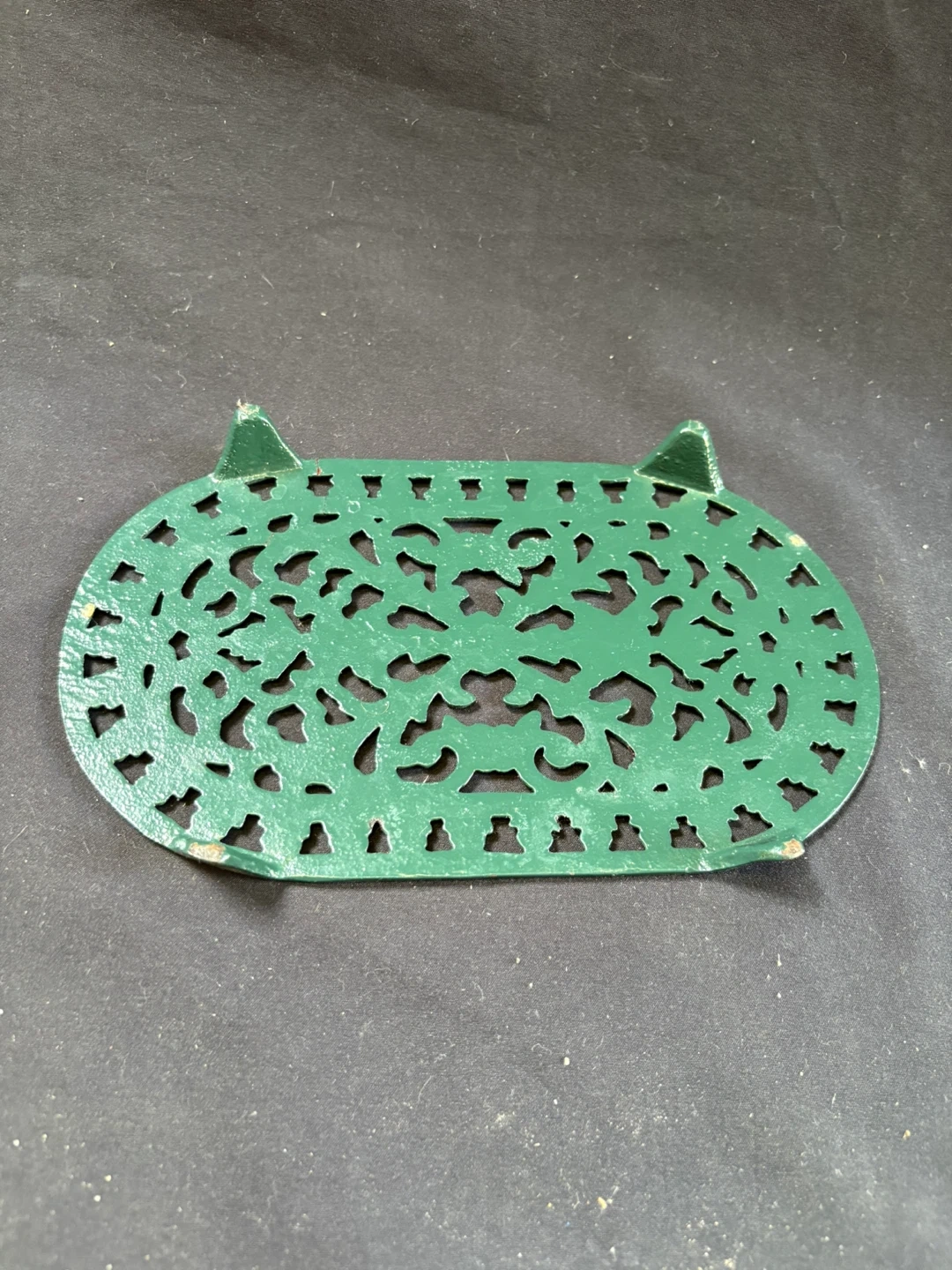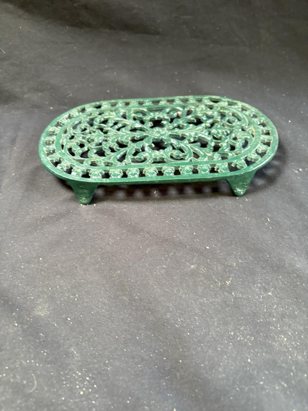 🧡like new Green Oval Cast Iron Trivet Here's a green oval cast iron trivet, perfect for protecting your surfaces from hot pots and pans! It features a lovely floral design and sturdy construction Measurements in last couple of pics $5 Pick up Victoria Park & O’Connor area