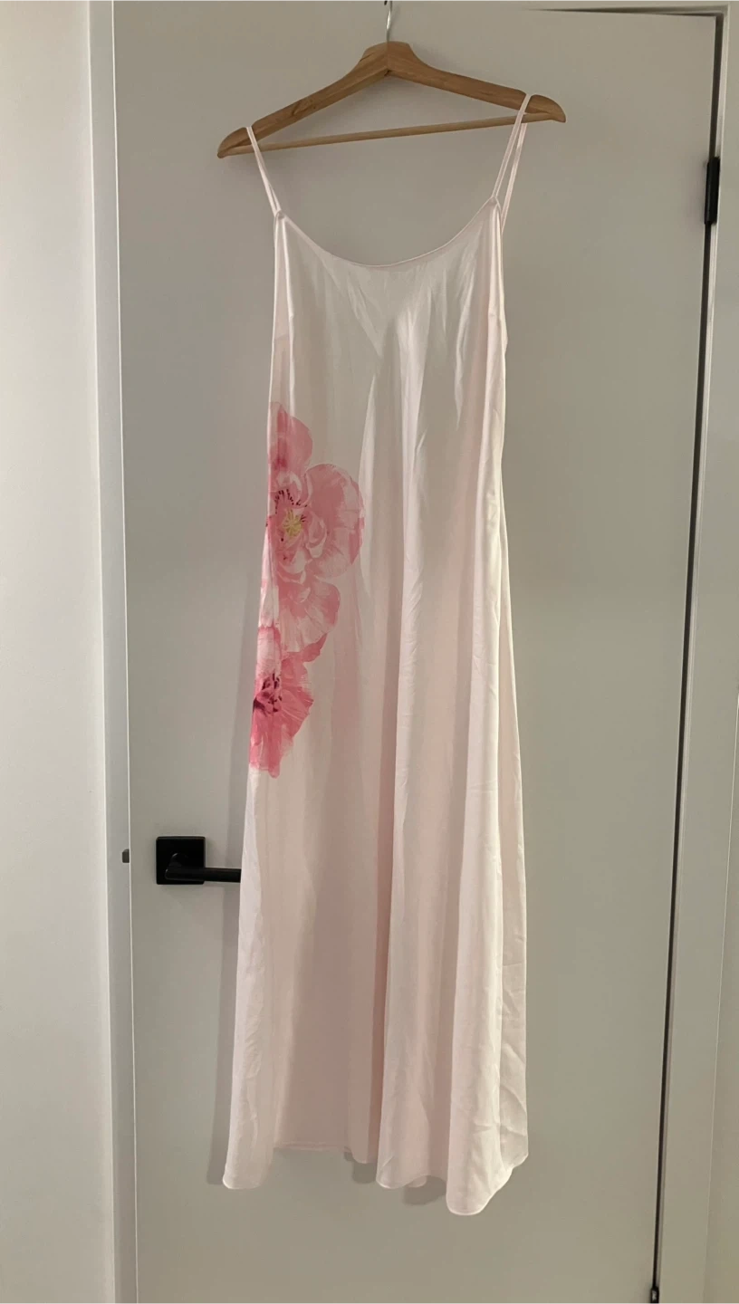 Selling a Victoria's Secret nightgown in a size large! It's a beautiful light pink colour with a floral pattern. Perfect for a comfortable night's sleep or lounging around the house. No tag