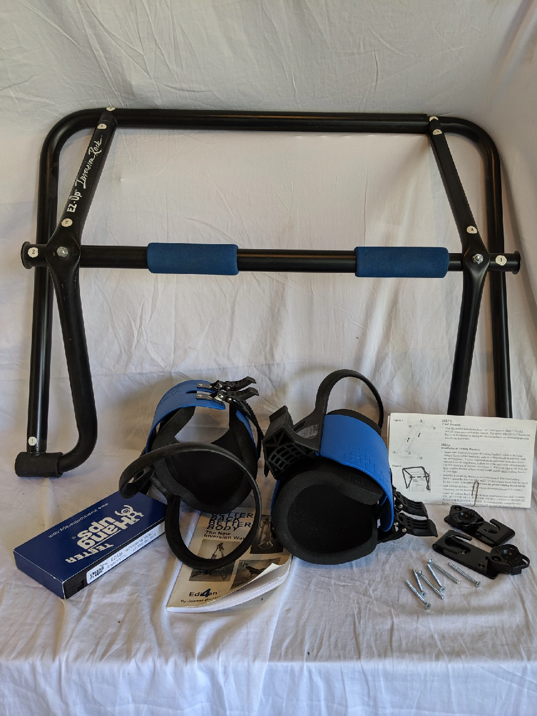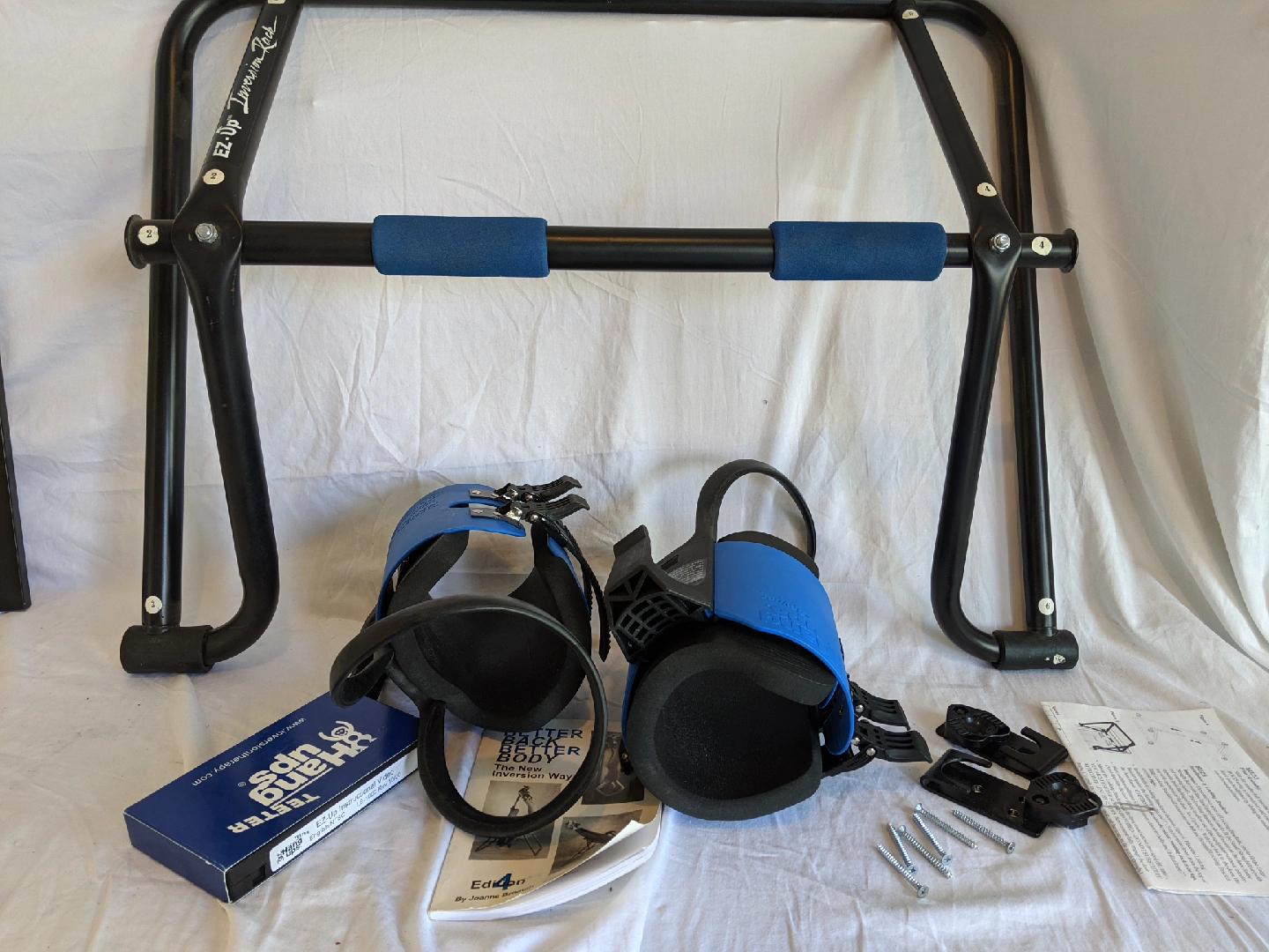 Selling an EZ-Up Inversion Rack with Gravity Boots. It is in good condition and comes with all the pictured components and accessories.