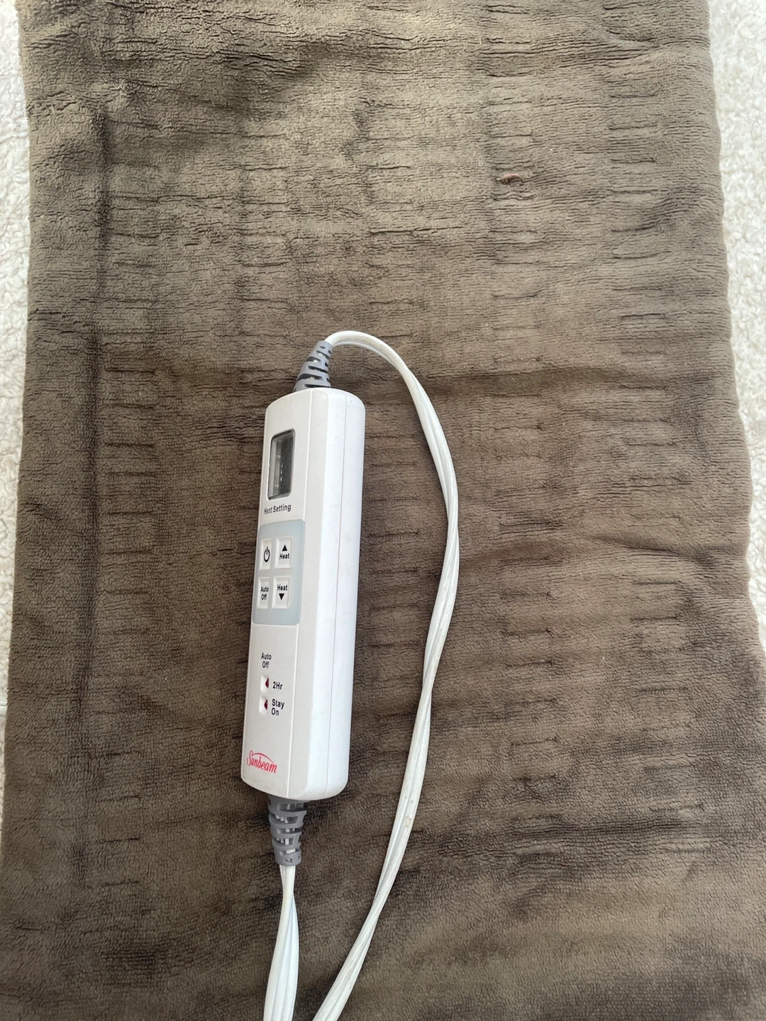 Cozy up with this Sunbeam heating pad! It's perfect for those chilly evenings when you need a little extra warmth. It has a control panel with different heat settings, so you can adjust it to your comfort level. It's in good condition and ready to keep you snug