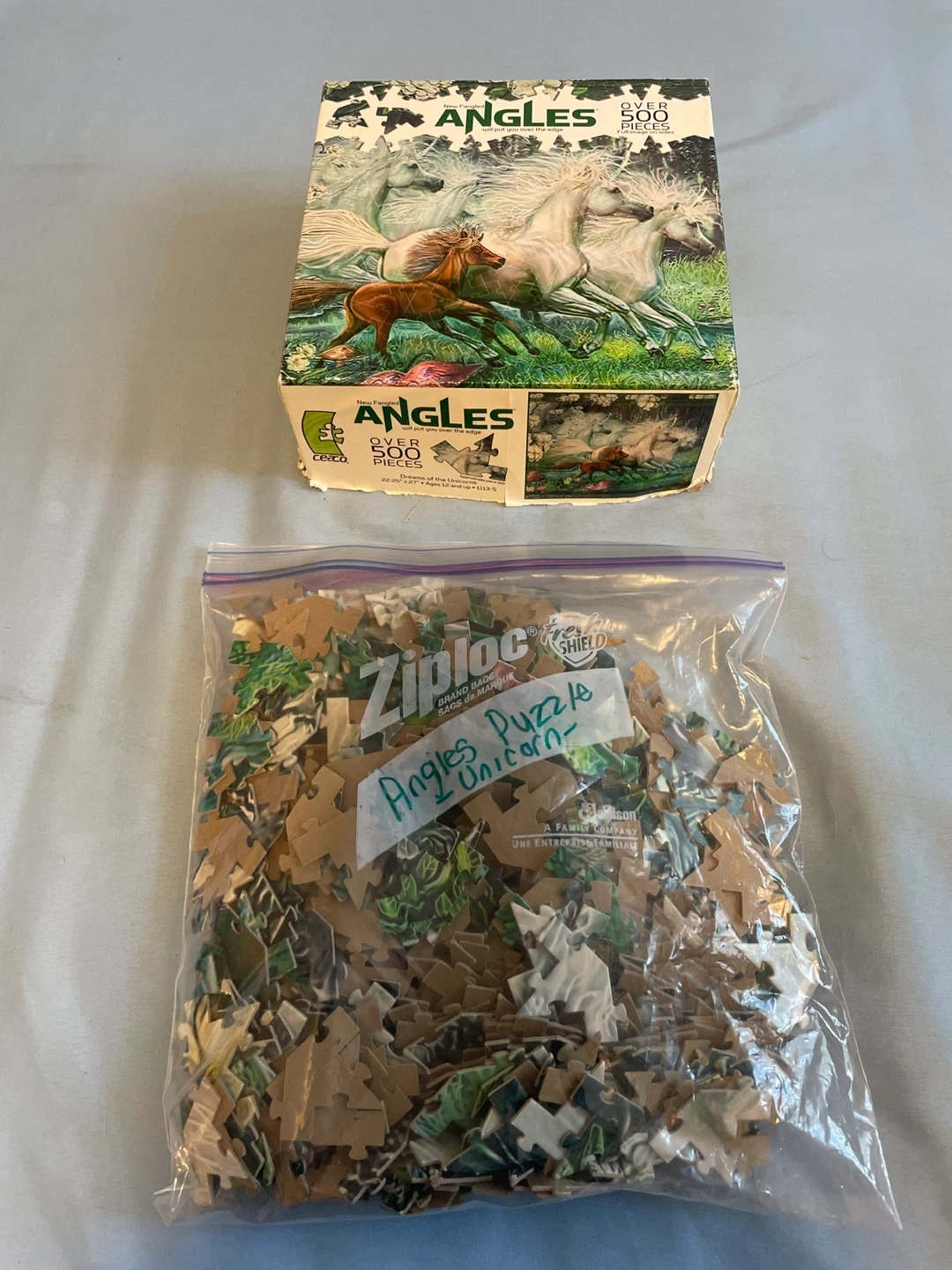 Ceaco Angles Unicorn puzzle with over 500 pieces! The puzzle is complete and in a Ziploc bag, ready for its next home. Hours of fun for puzzle enthusiasts! Only pick up π