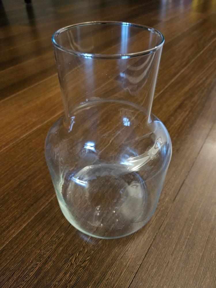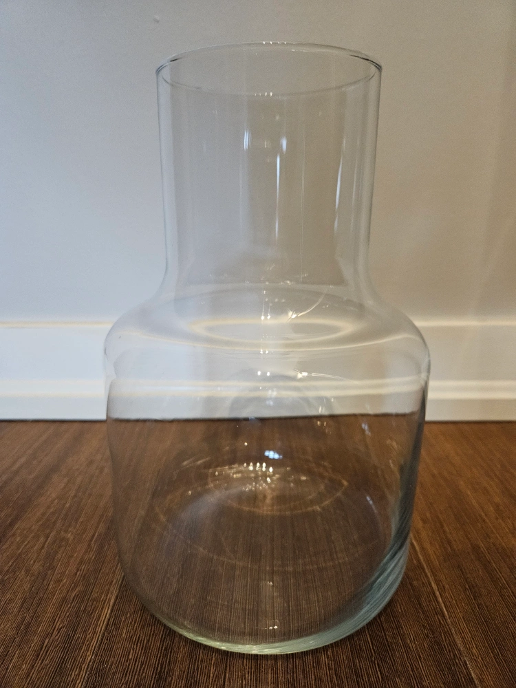 Beautiful, clear glass carafe / vase. Perfect for flowers or home decor. Simple design, elegant shape. Approximately 9" tall, 5" wide at base. See my other listings. Located near King St W & Dufferin St.