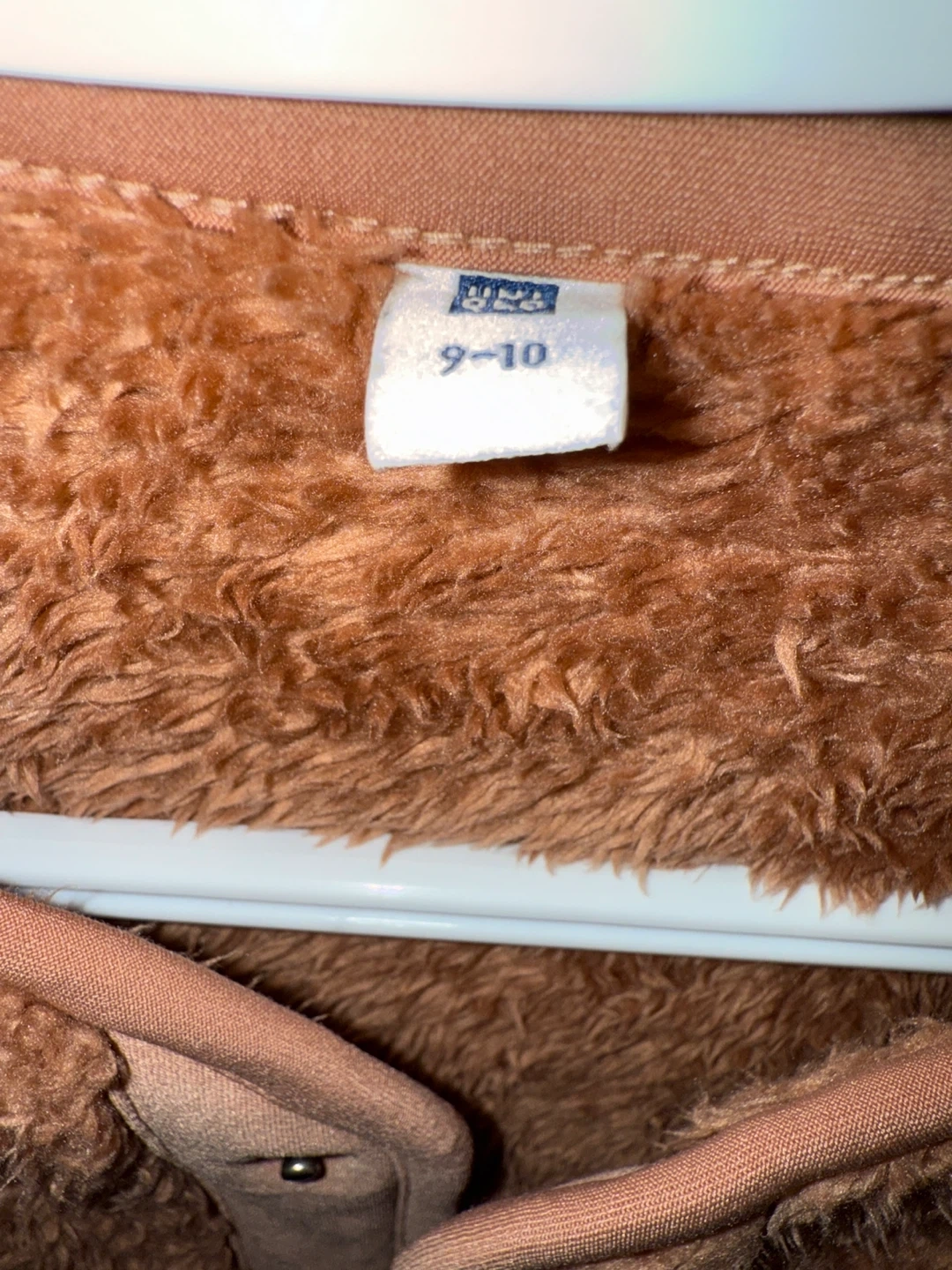 Selling a Uniqlo fluffy yarn fleece jacket in size 9-10. It's a cozy and warm jacket, perfect for layering during the cooler months. The jacket features a button-up front and a soft, fluffy texture.