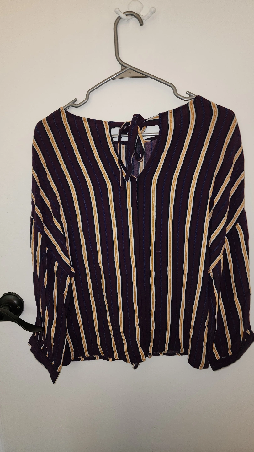 Here's a cute blouse from Promod! It features a striped pattern in plum, gold and blue, and has a tie detail at the back. Perfect for adding a pop of colour to your wardrobe