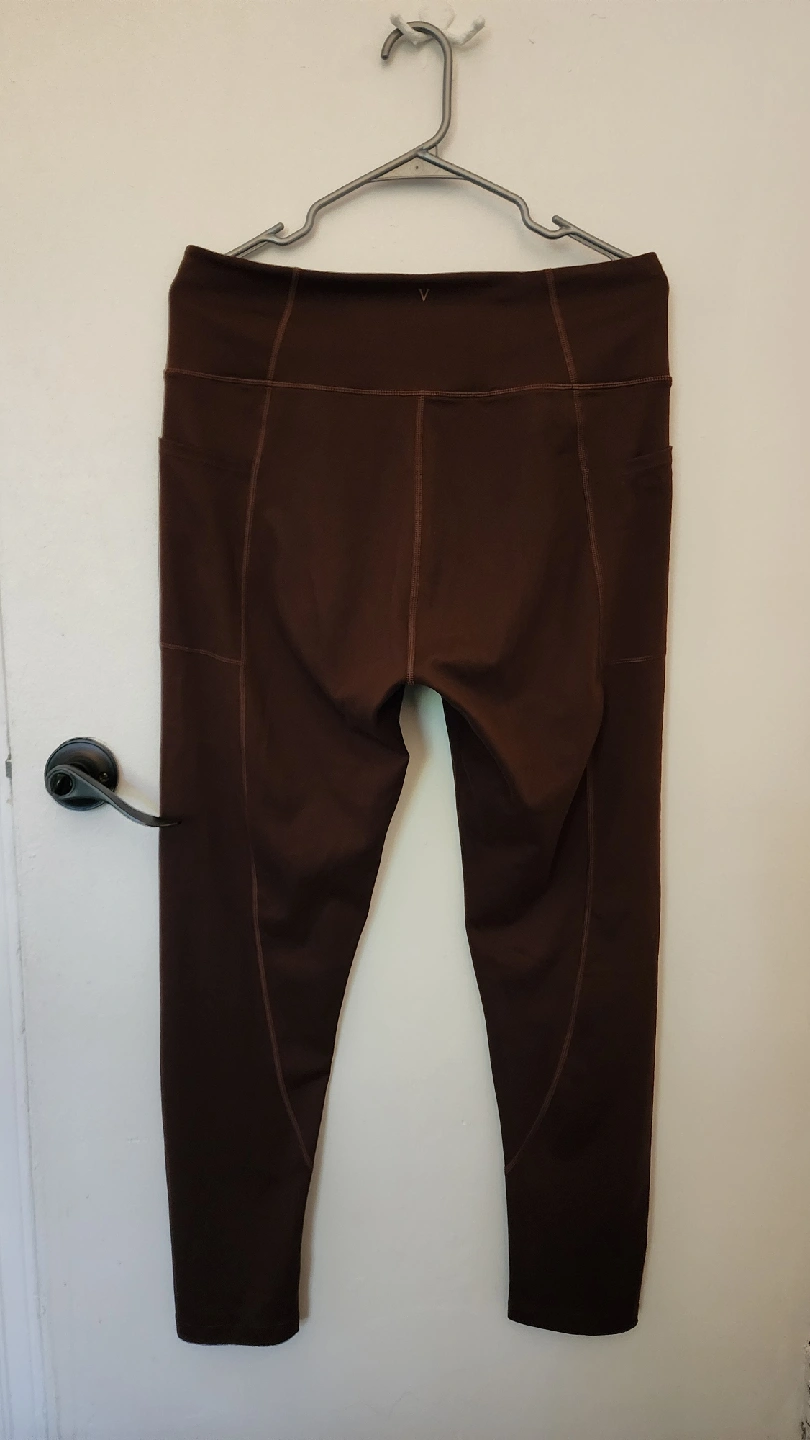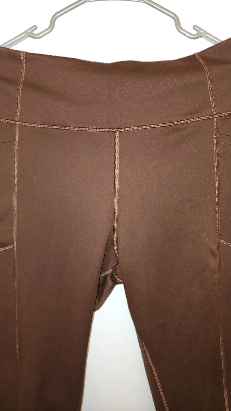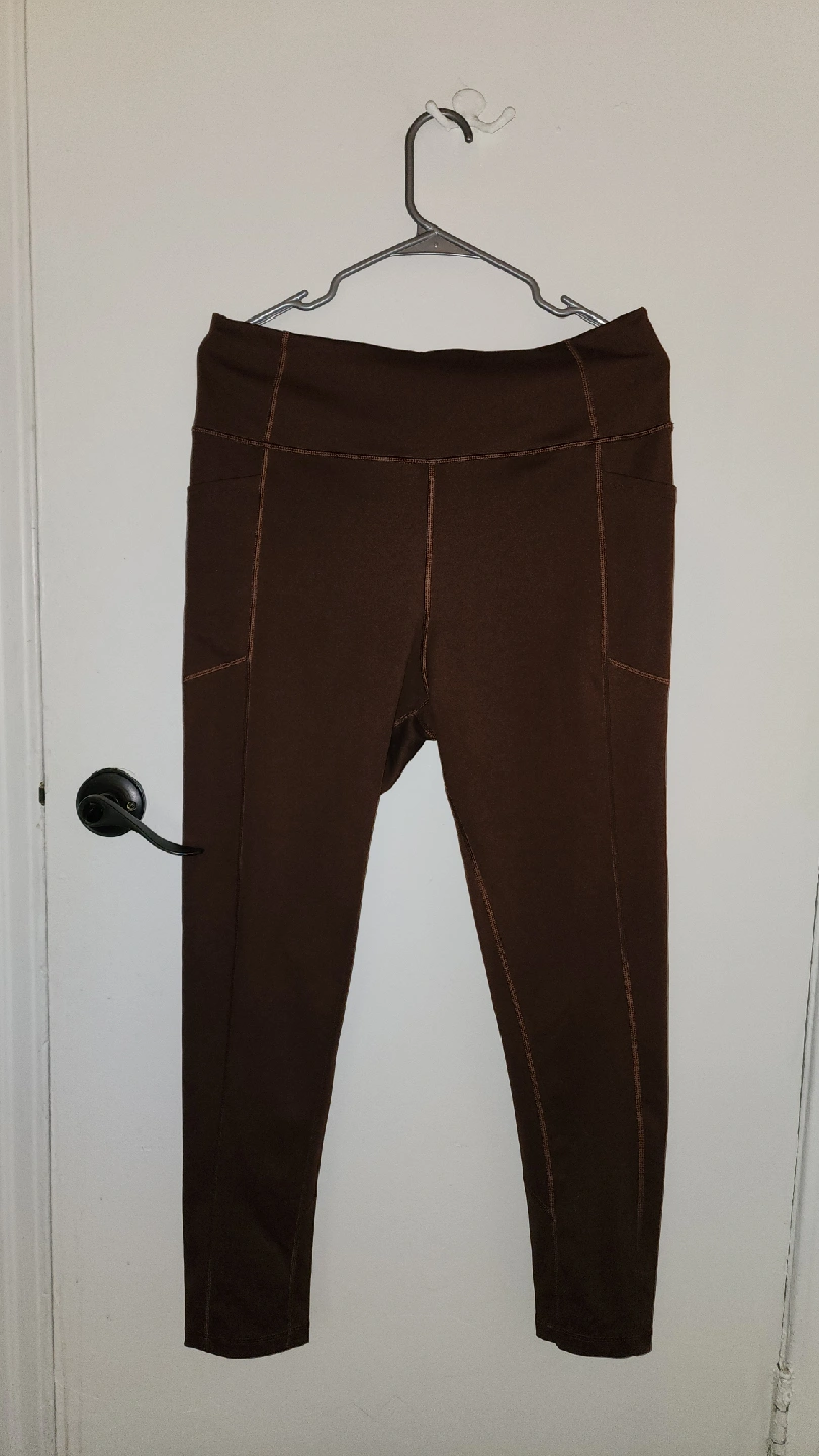 Selling a pair of brown leggings. They have a high waist, convenient side pockets and is super soft! Great for workouts or just lounging around!