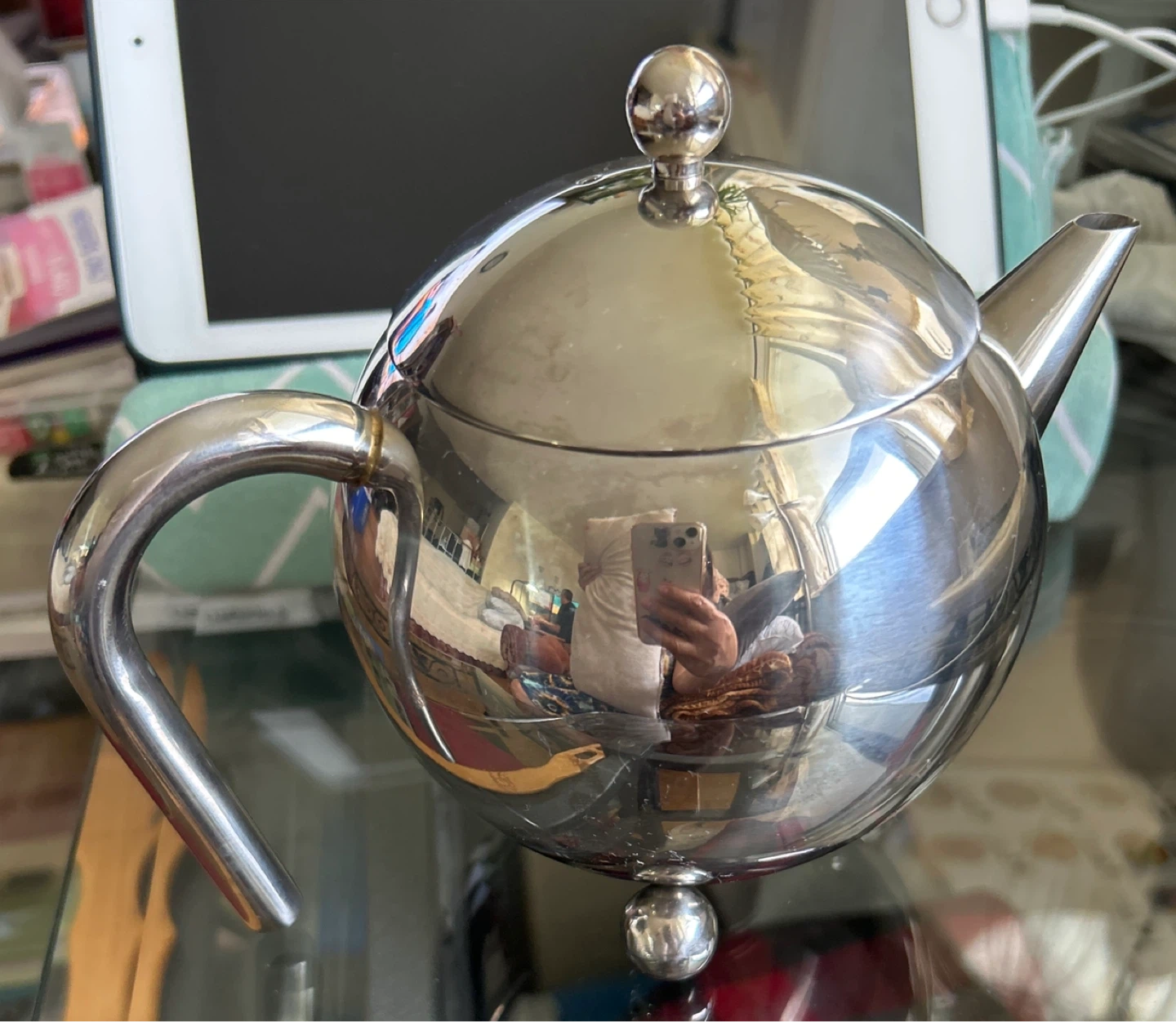 Selling a New - stainless steel teapot. It's in great shape and ready for a new home! Perfect for brewing your favourite tea. It has its own removable tea leaves strainer inside the pot. It has a nice unique style handle. A good quality tea pot. Never been used as you can tell from its strainer no tea stains. Missing the tags/labels. Please check out all the photos provided. Smoke/Pet free home. Cash & pick up only.
