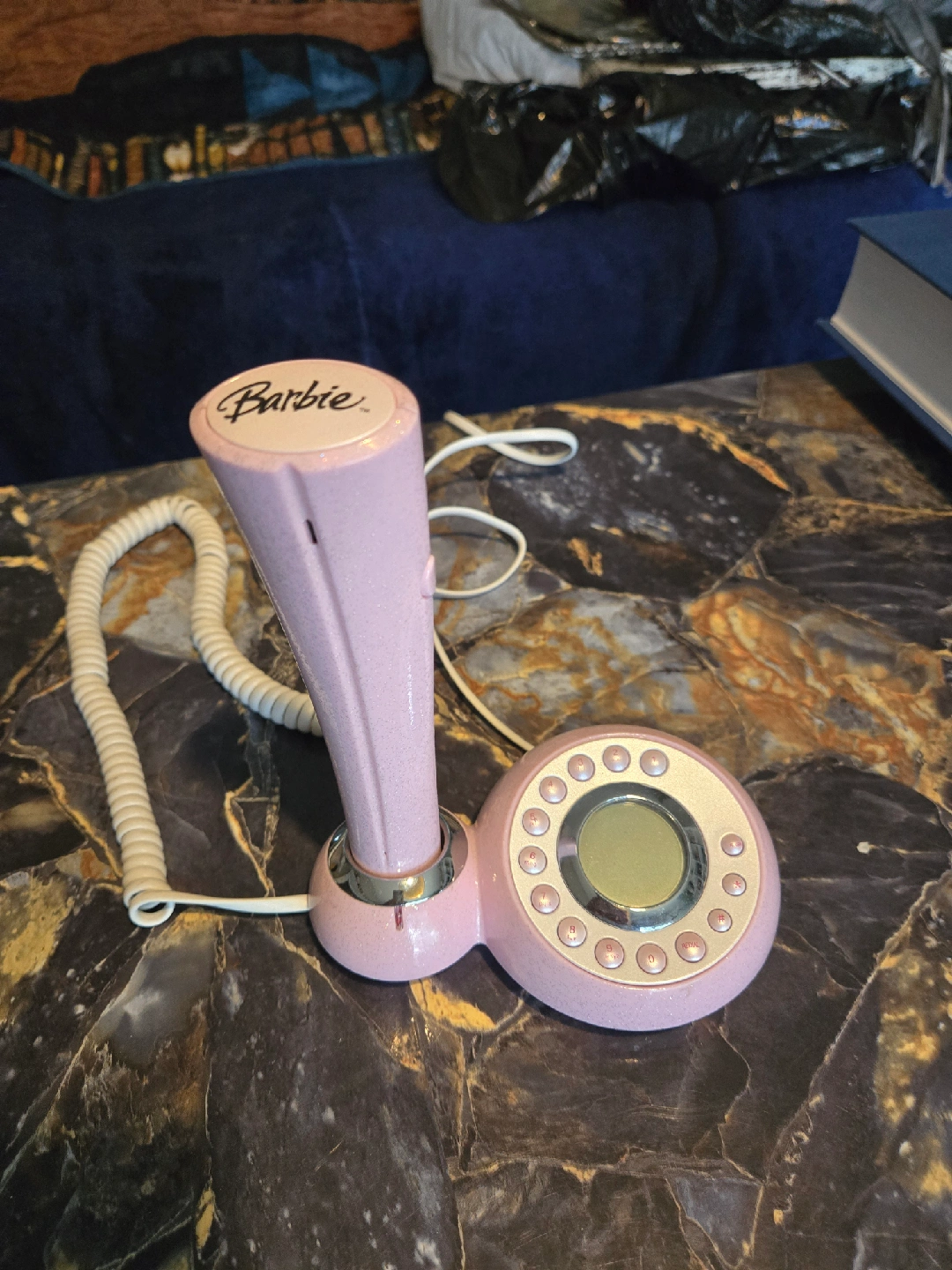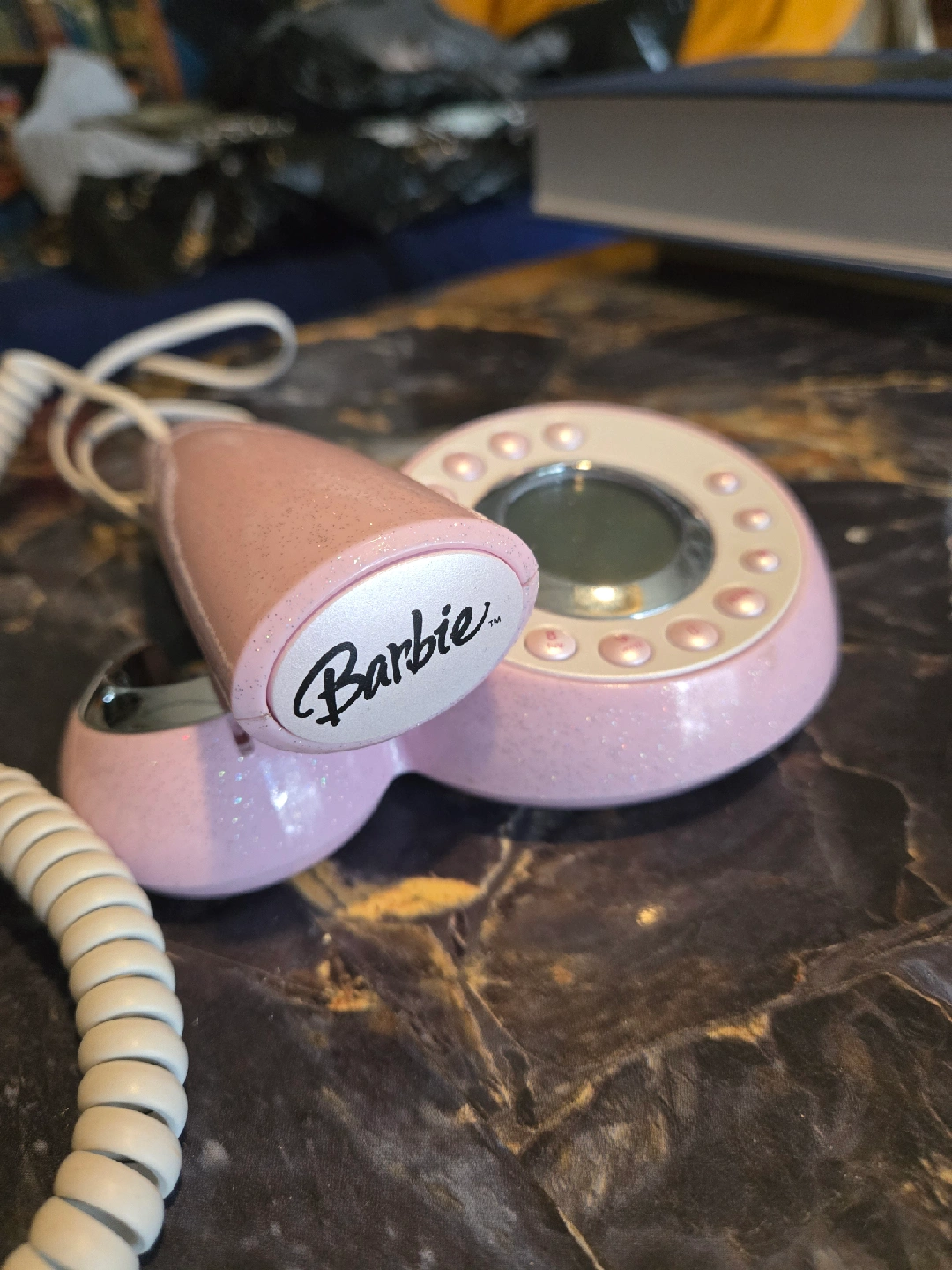 Selling a cute Barbie corded telephone! It's a fun, retro-style phone in a lovely pink colour. Perfect for adding a touch of nostalgia to your space!