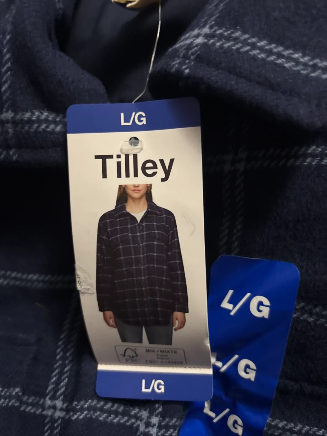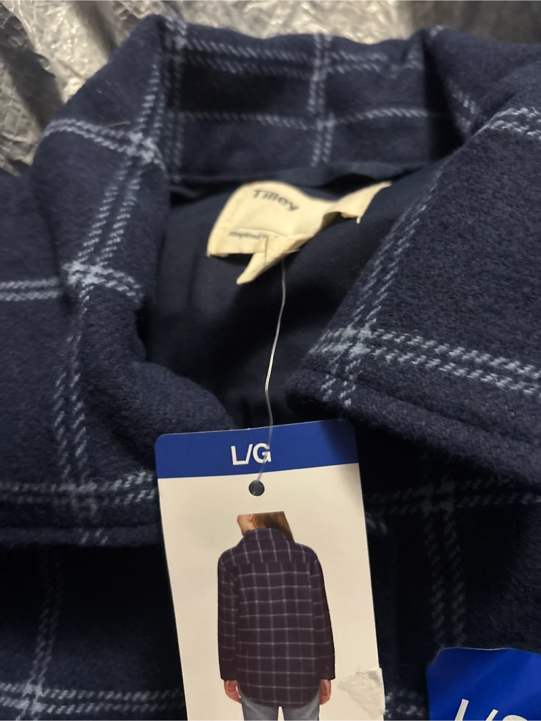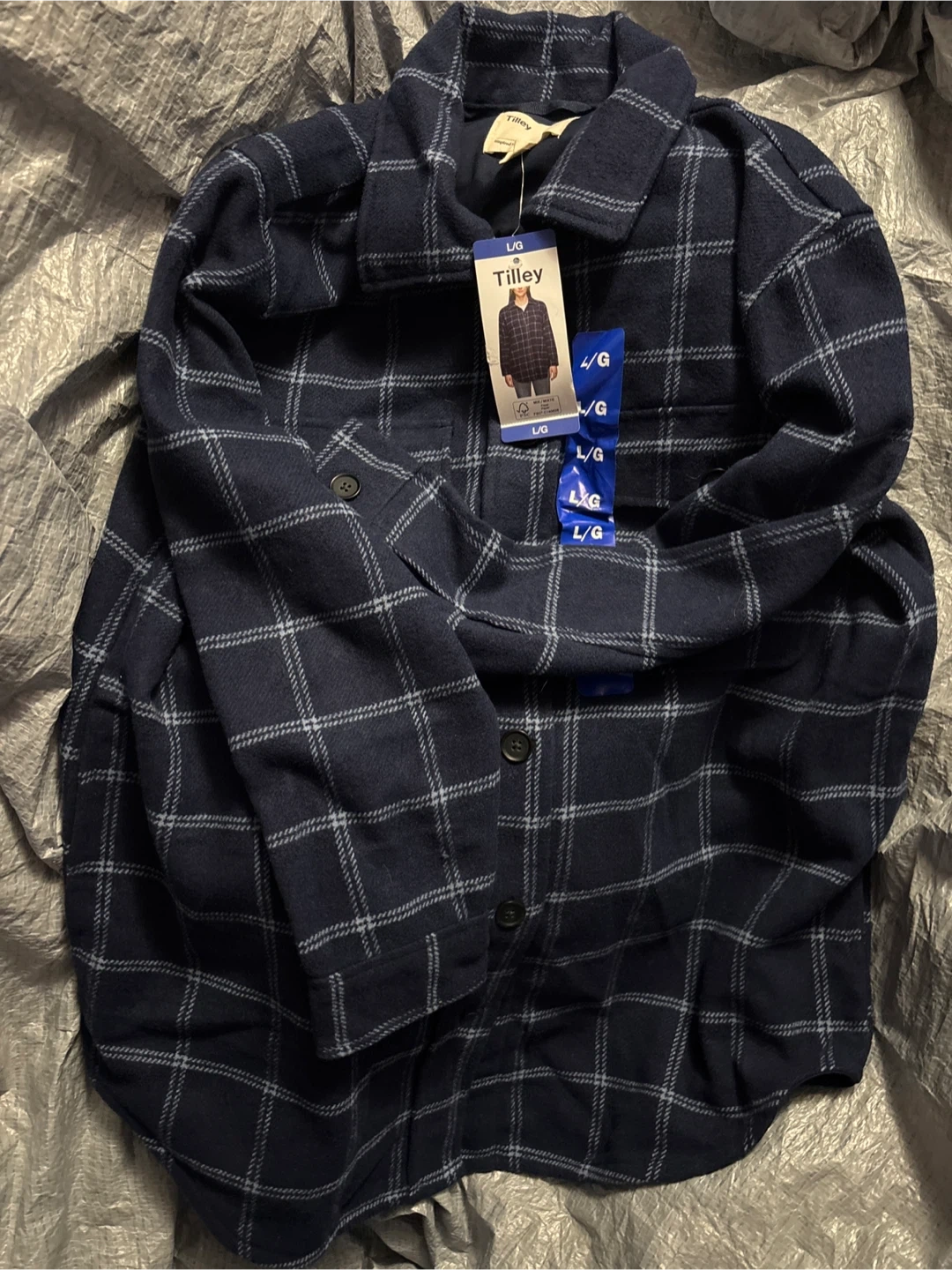 Selling a brand new Tilley plaid shirt jacket in size L/G. It still has the original tags attached! Perfect for layering or wearing on its own. The classic plaid pattern makes it a versatile addition to any wardrobe