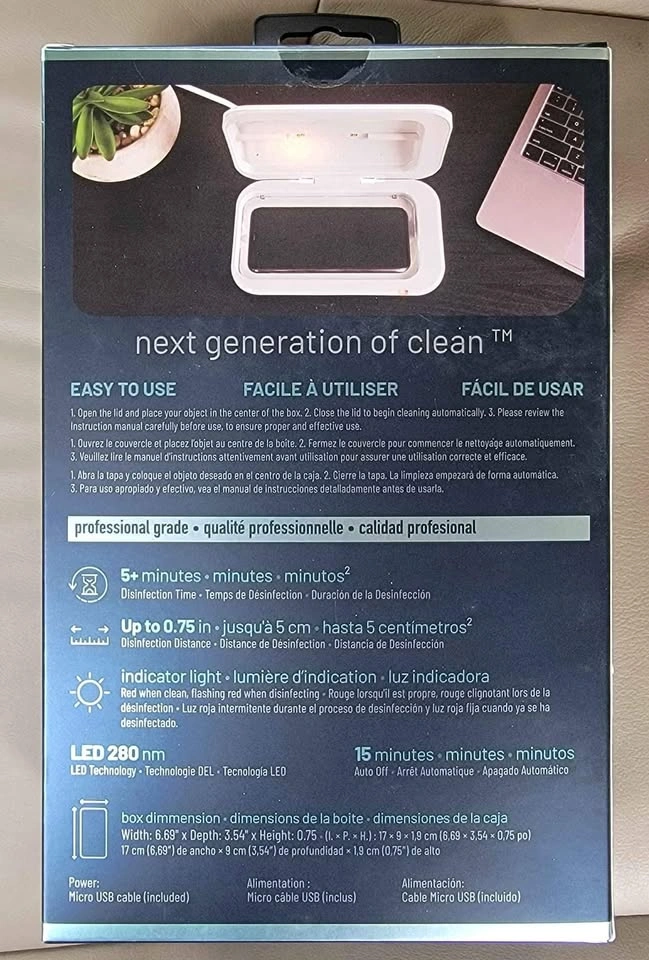 Brand new with the seal intact. Disinfectant box kills up to 99% germs and bacteria. Ready for the next generation of clean? This product is great for cell phone keys watches you name it. Just takes 5 mins. For more info please read on the box provided in the picture.