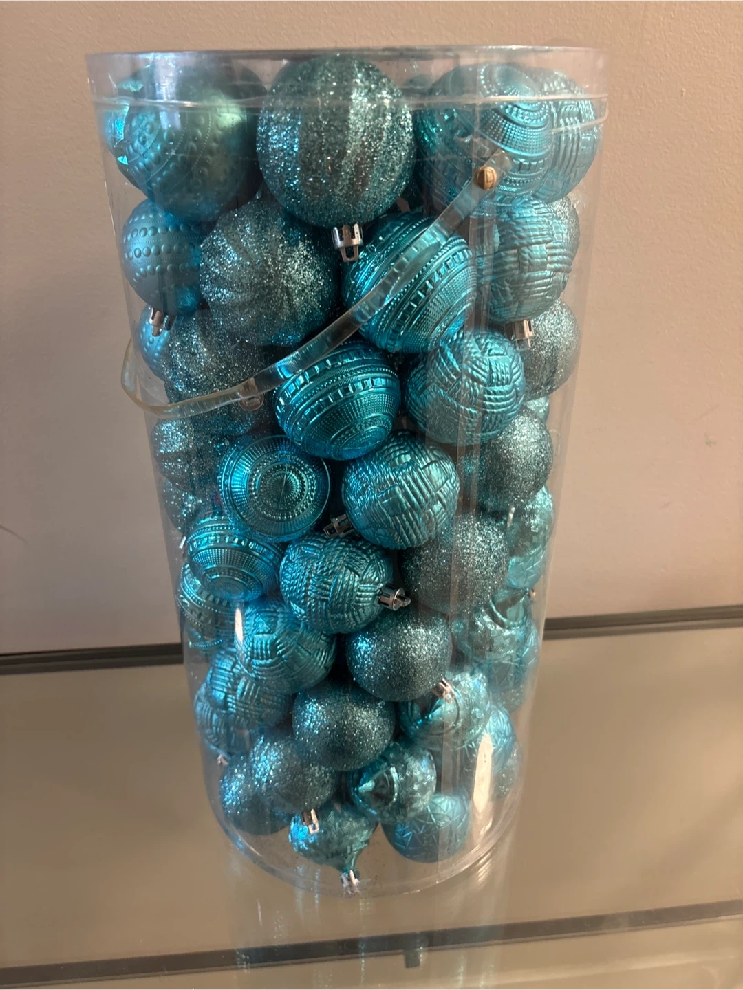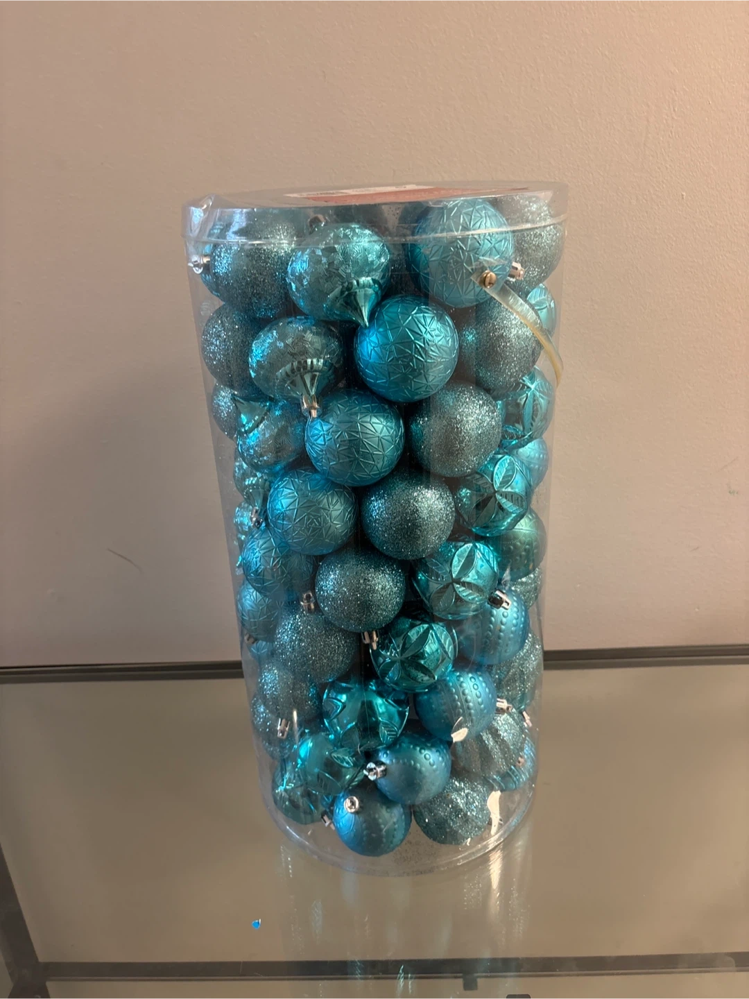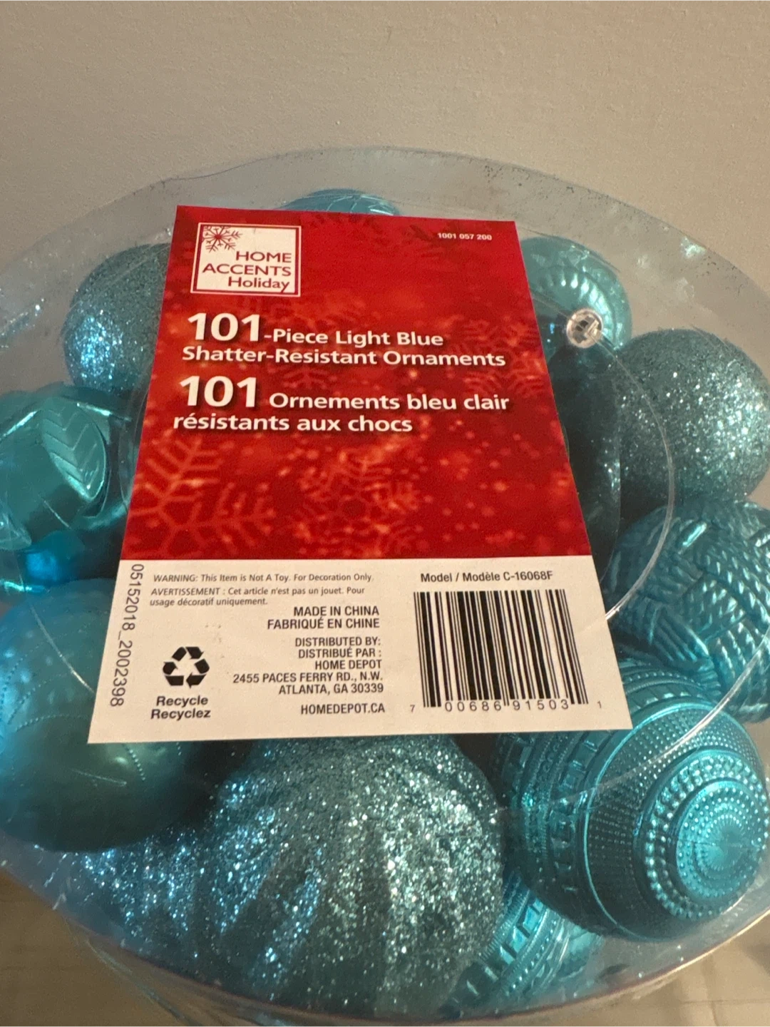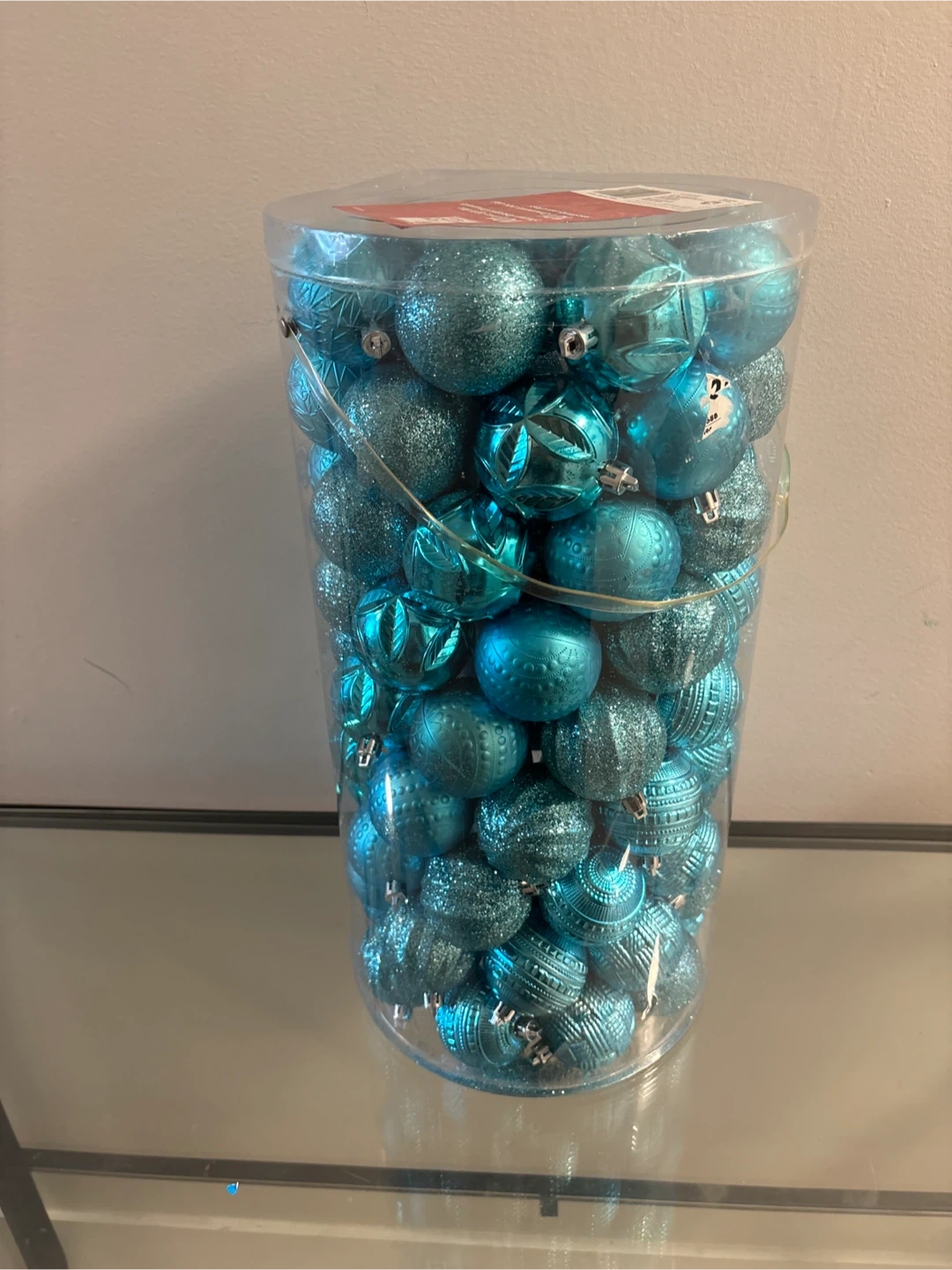 Selling a set of 101 light blue shatter-resistant ornaments from Home Accents Holiday! They are in excellent new condition and come in the original packaging. Perfect for adding a touch of light blue sparkle to your holiday decor