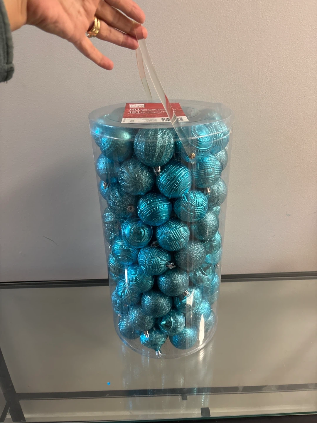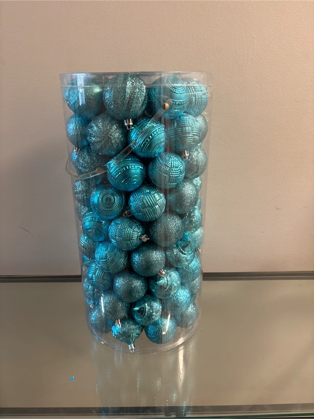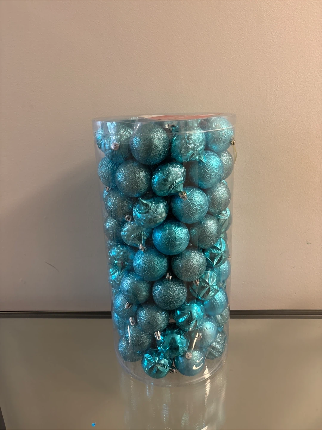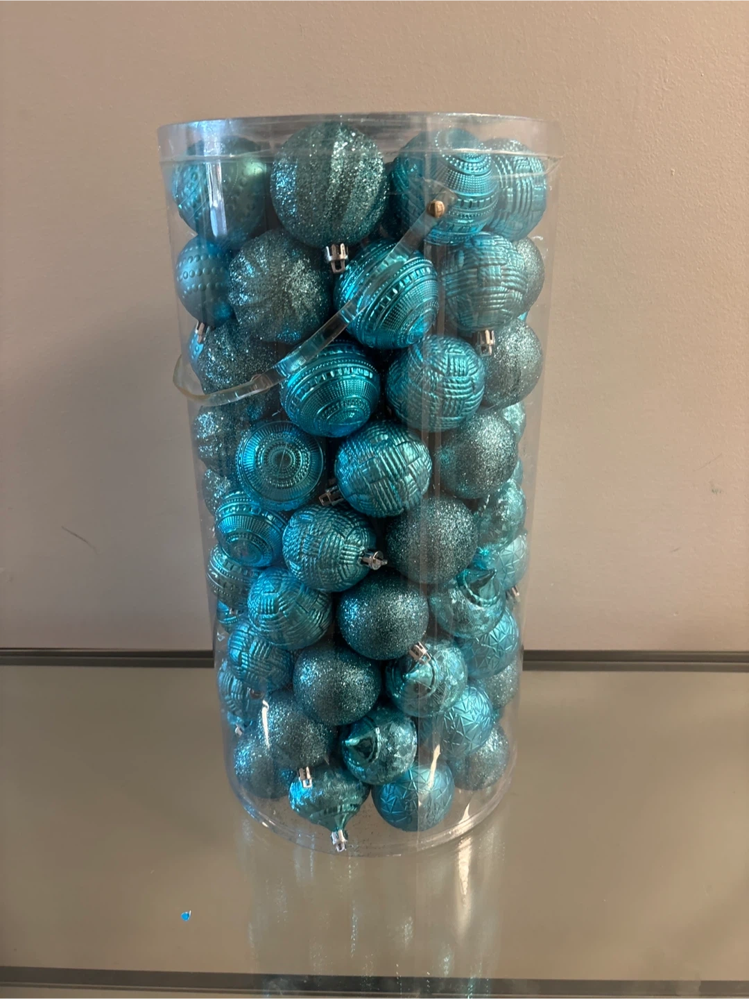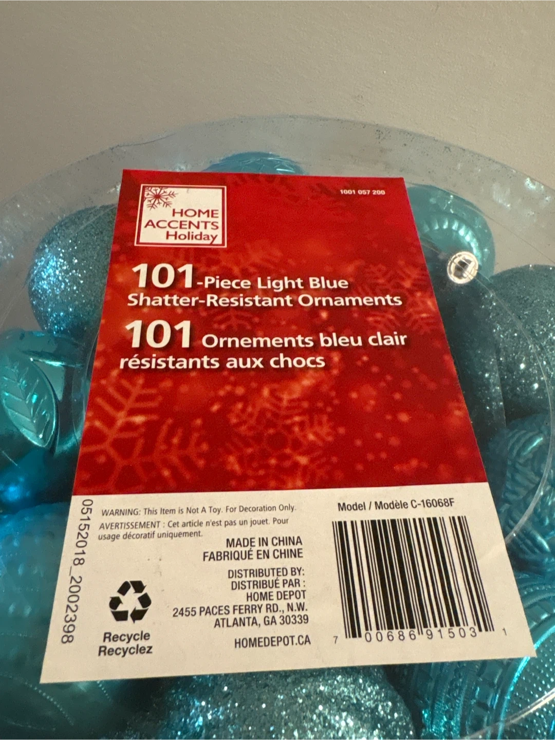 Selling a set of 101 light blue shatter-resistant ornaments from Home Accents Holiday! They are in excellent new condition and come in the original packaging. Perfect for adding a touch of light blue sparkle to your holiday decor