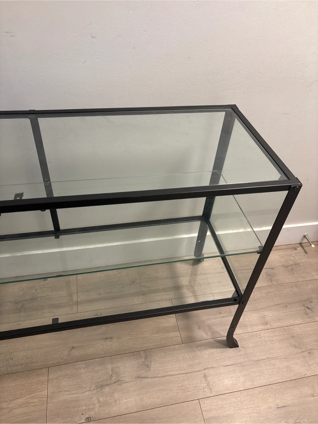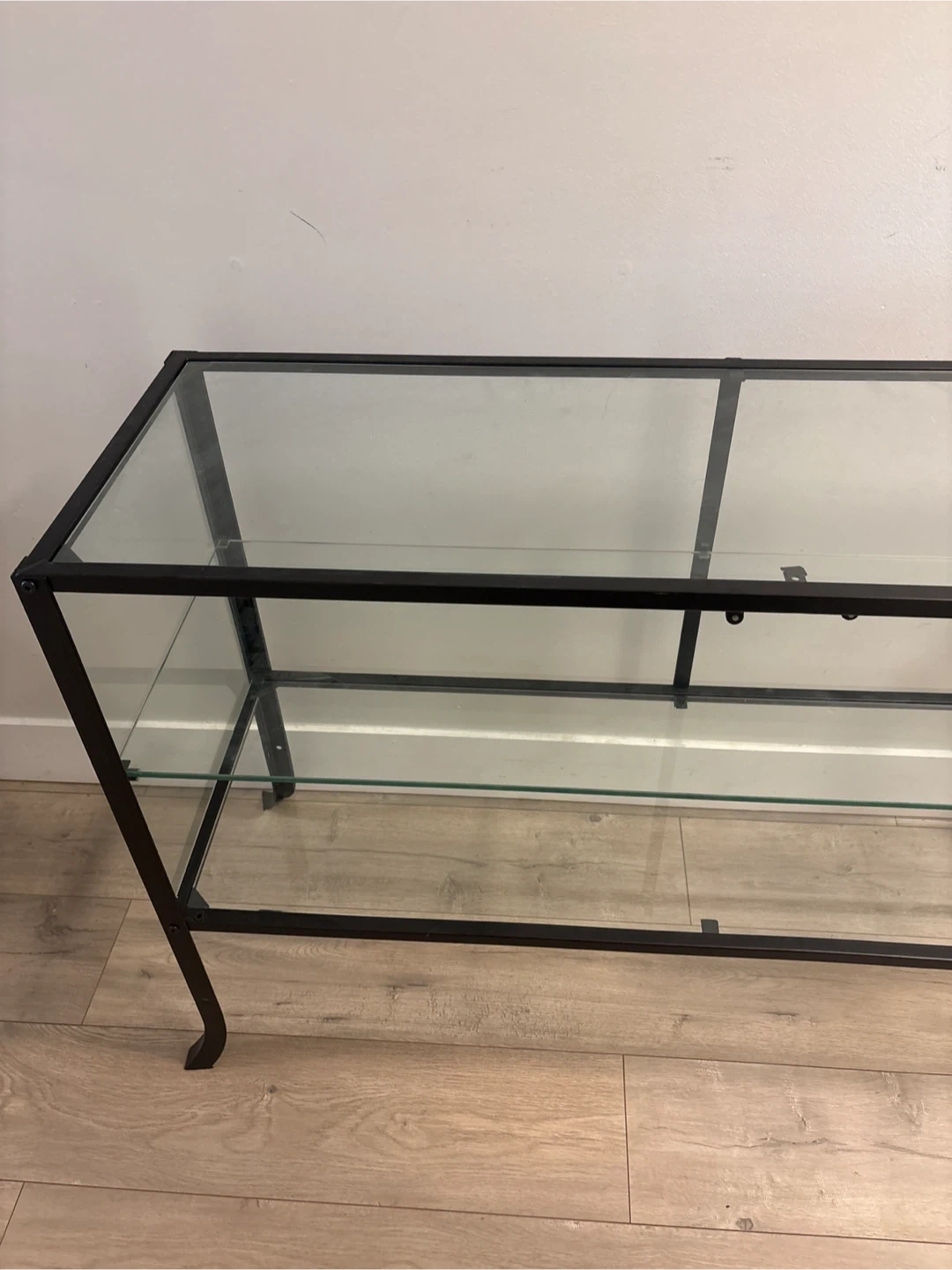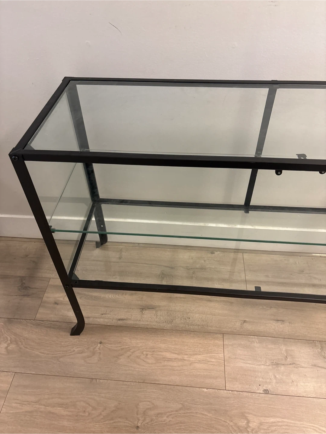 Selling a stylish black metal and glass Display Console Table . It's in great shape and ready for a new home! Perfect for adding a modern touch to your living room.