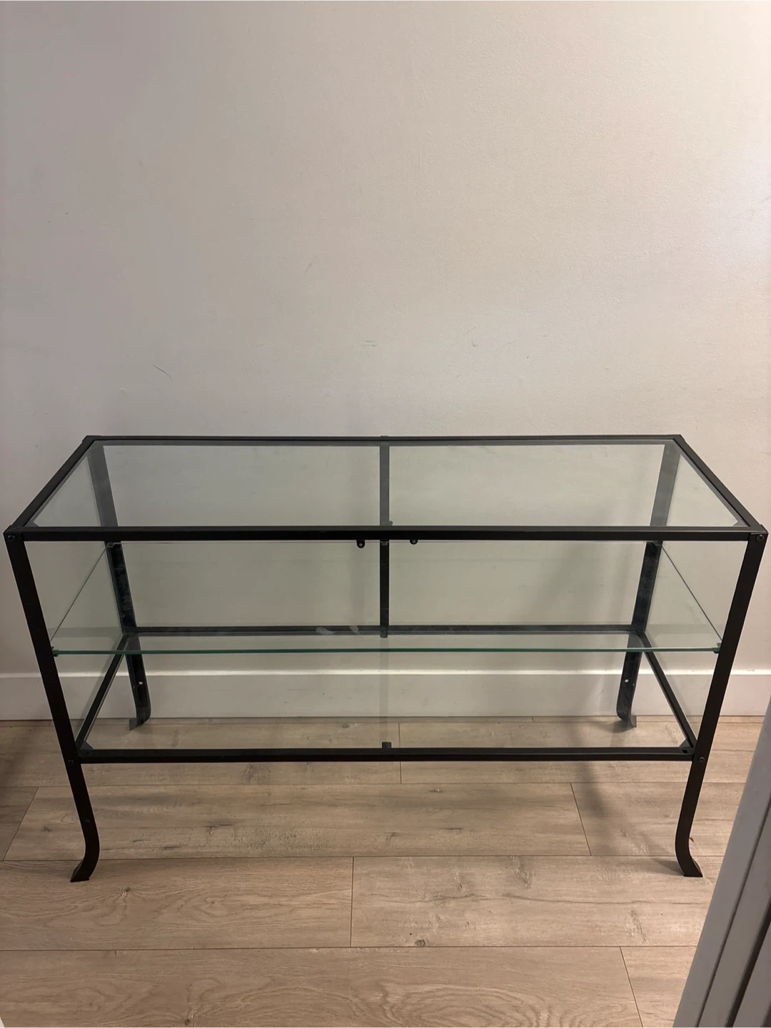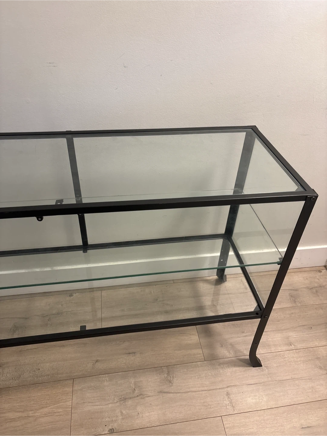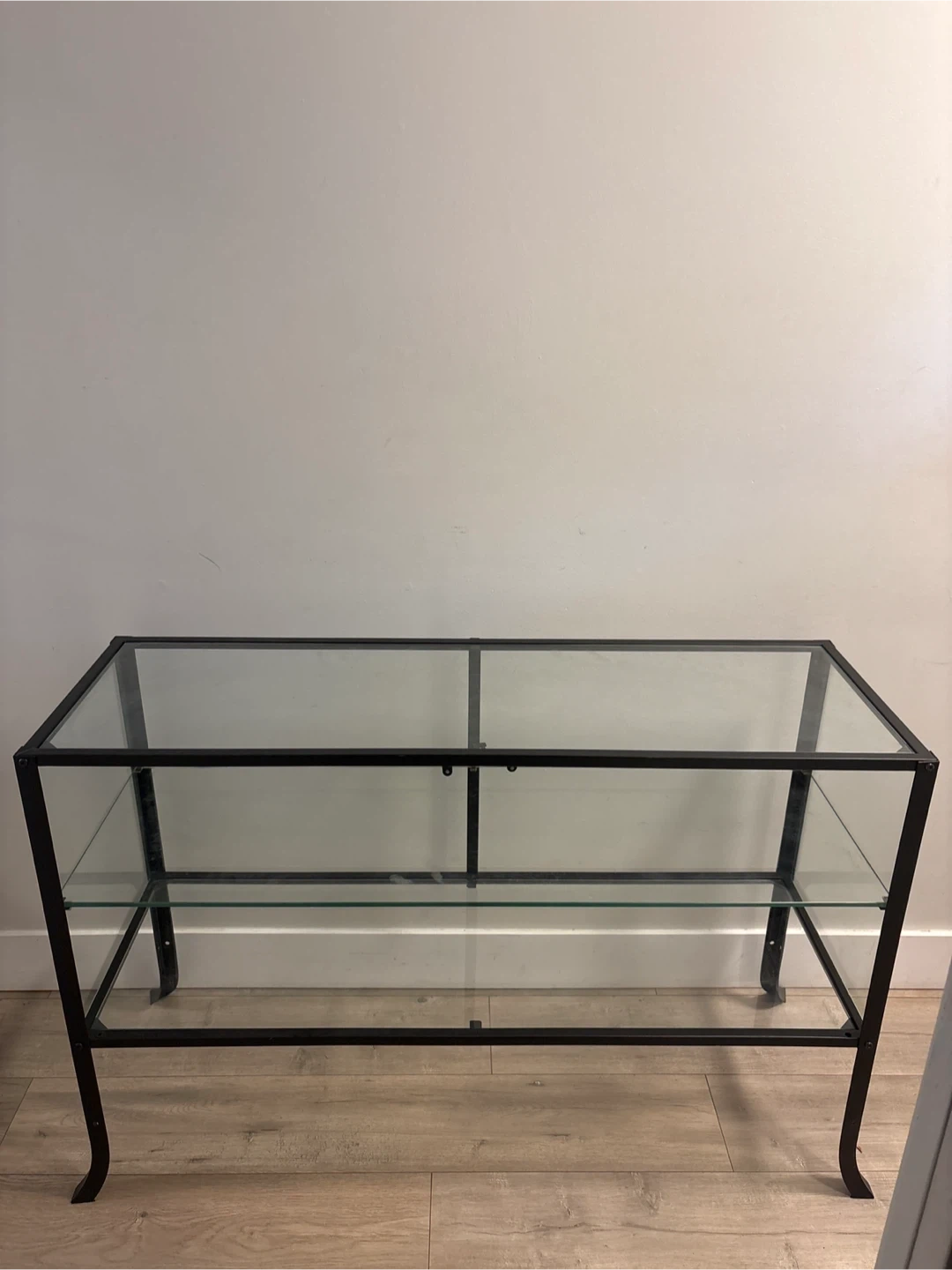 Selling a stylish black metal and glass Display Console Table . It's in great shape and ready for a new home! Perfect for adding a modern touch to your living room.