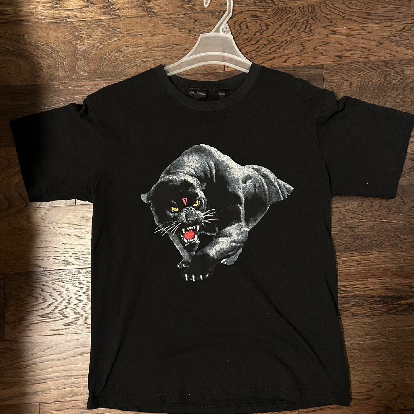 Selling a Vlone tee with a Black Panther graphic on the front and the signature Vlone 'V' on the back! It's in great condition and ready for a new home