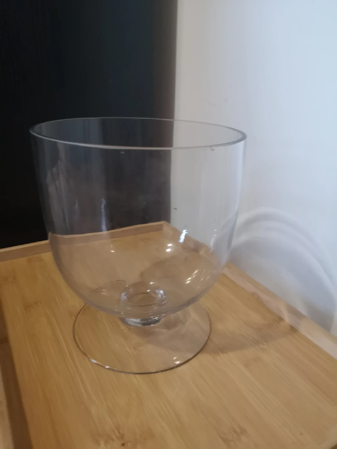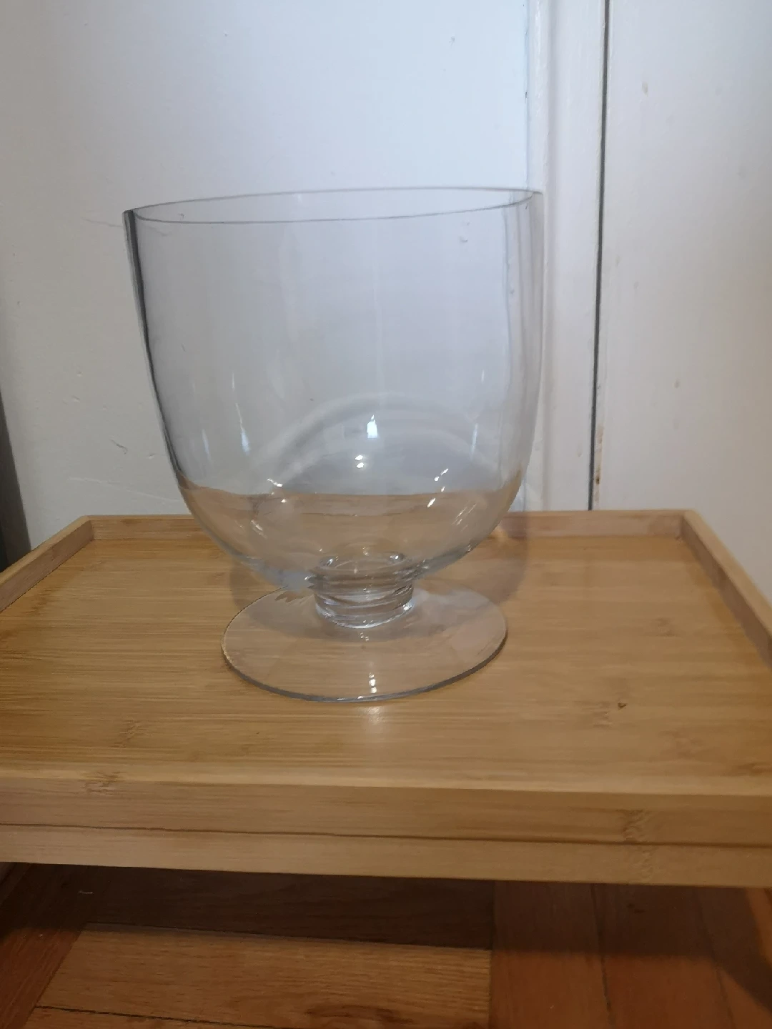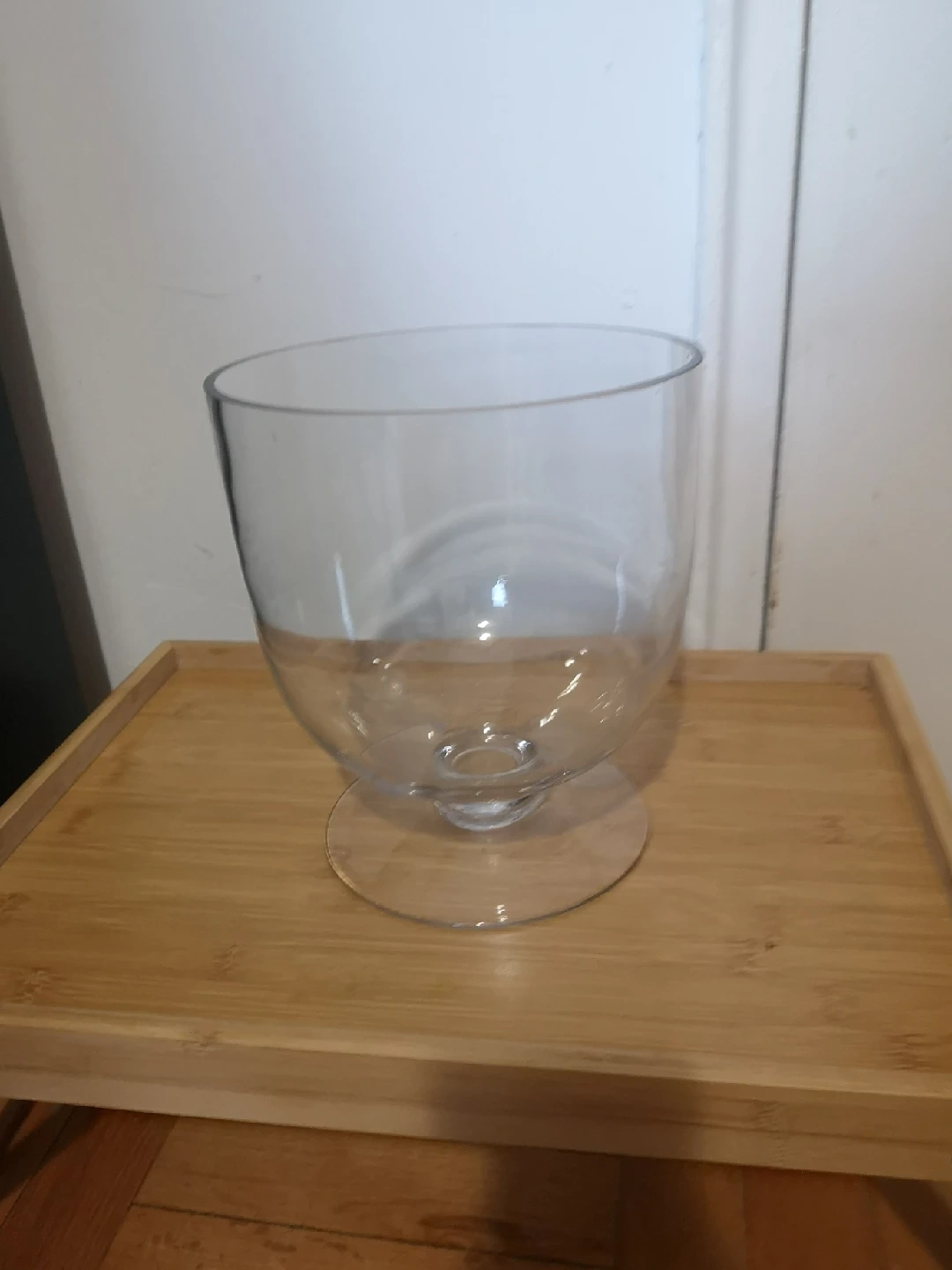 I'm selling a clear glass footed bowl! It's in great condition and would be perfect for displaying fruit or using as a centrepiece on a table