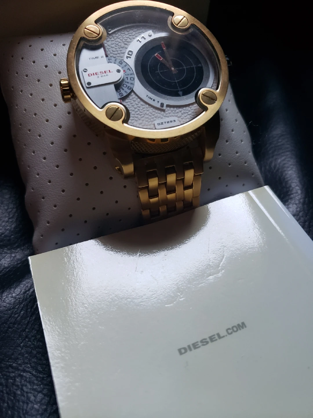 Selling a Diesel DZ7293 gold plated watch. It comes with the original box and with instructions booklet. In like new condition with no scuffs or scratches. Has barely been worn. ( Just needs new battery ) Sold as is. PLEASE NOTE: I removed links when I purchased this watch. I no longer know where they are. Band fully closed is only 7" in diameter. Pickup only. Listed price is firm. Public meet up located at Campbell Avenue and Wallace ave intersection in Toronto's west end Junction area.